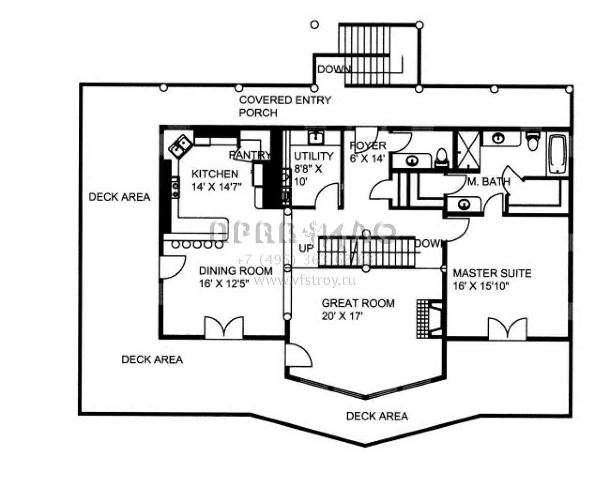 S5-243 (039-00530) Это иностранный проект, для которого требуется адаптация под нормы, действующие в Российской Федерации. Вы видите проект дома в скандинавском стиле. В этом доме сочетаются черты сельской постройки и аскетичность лофта. Внутри жильцы смогут проводить время с максимальным комфортом. Обратим внимание, что сейчас на планировках все размеры представлены в футах. Для перевода в метры вам необходимо значение в футах умножить на 0,3048.