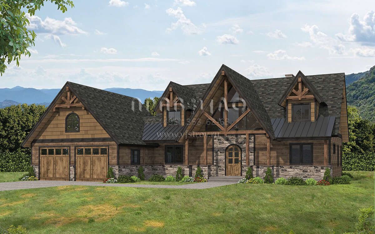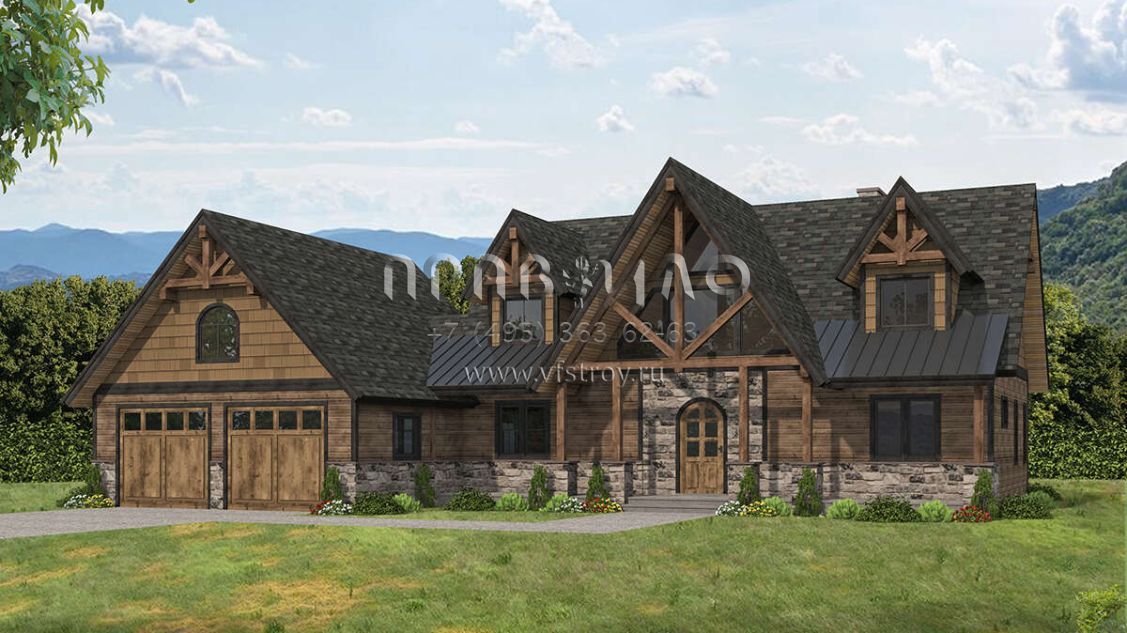 Проект двухэтажного дома с гаражом на две машины в американском стиле S5-243 (039-00749)