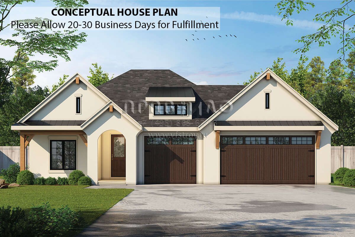 Проект одноэтажного дома с гаражом на три и более машин в английском стиле S5-243 (402-01768)