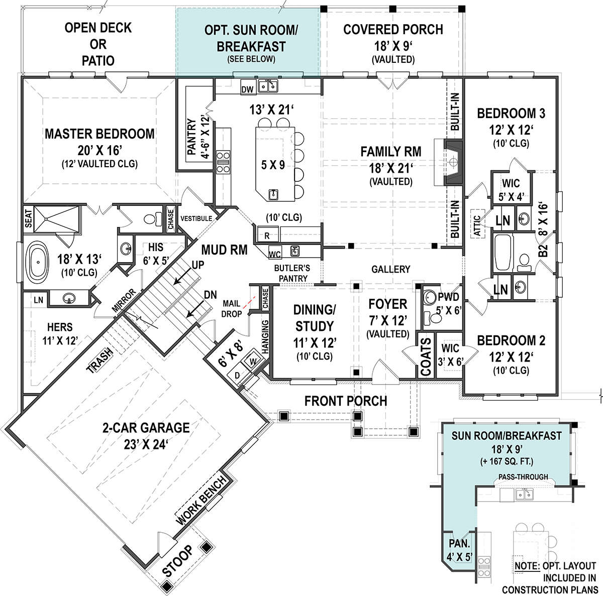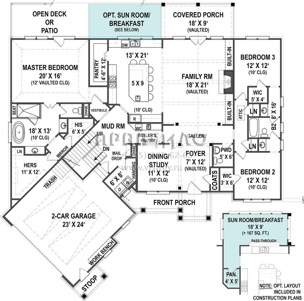Проект одноэтажного дома с гаражом на две машины в американском стиле S5-243 (4195-00002)