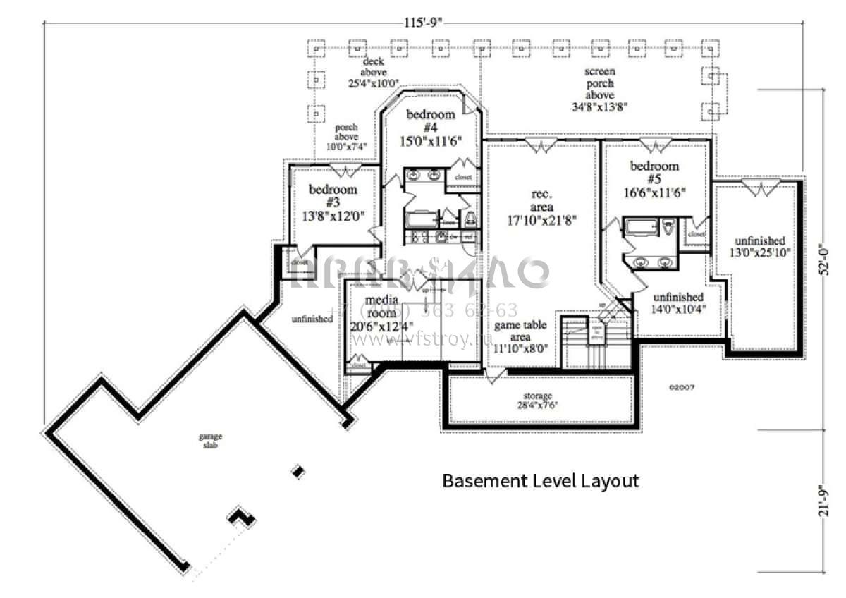 S5-243 (957-00066) Это иностранный проект, для которого требуется адаптация под нормы, действующие в Российской Федерации. Вы видите проект дома в стиле Ранчо. В этом доме сочетаются черты сельской постройки и аскетичность лофта. Внутри жильцы смогут проводить время с максимальным комфортом. Обратим внимание, что сейчас на планировках все размеры представлены в футах. Для перевода в метры вам необходимо значение в футах умножить на 0,3048.