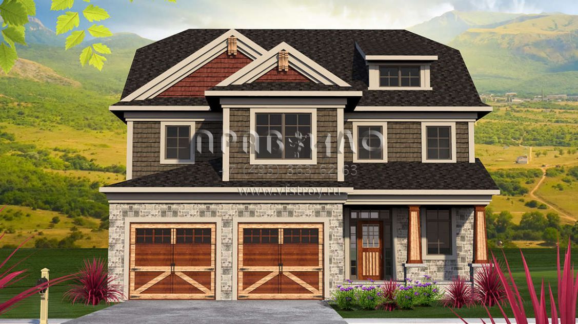Проект двухэтажного дома с гаражом на две машины в американском стиле S5-244 (1020-00177)