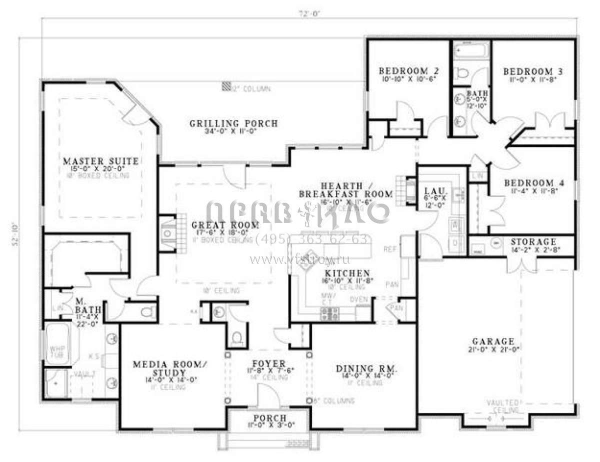 Поскольку этот проект разрабатывался иностранными архитекторами, для строительства дома требуется переработка проекта под действующие в России нормы. Данные визуализации проекта представлены для ознакомления с концепцией проекта. Проект разработан американским архитектурным бюро и представлен America's Best House Plans.
