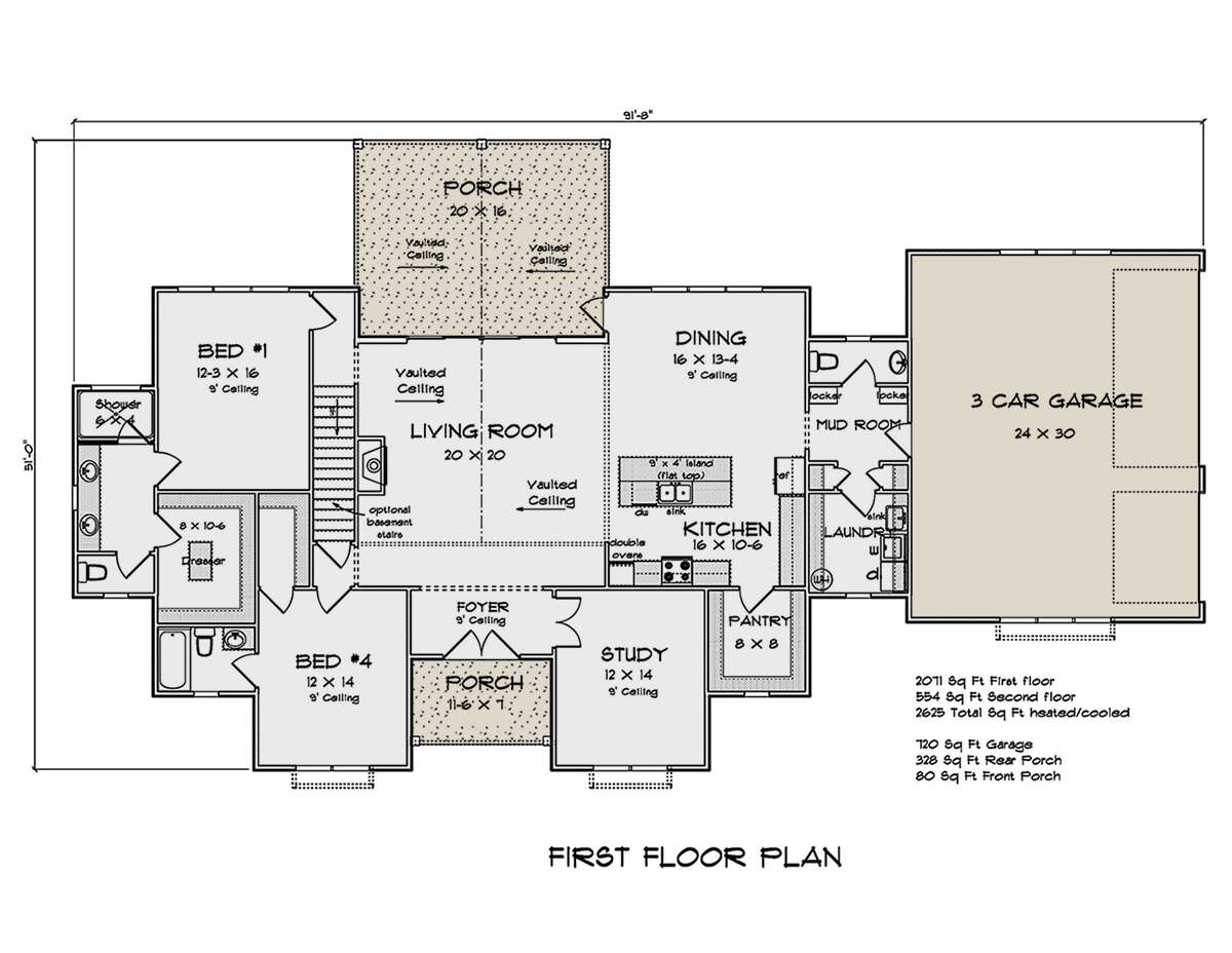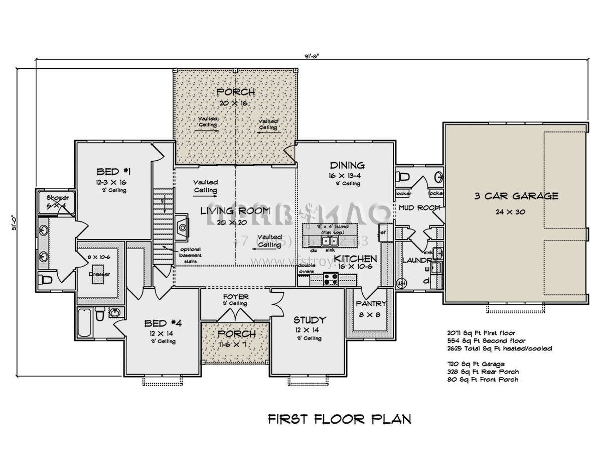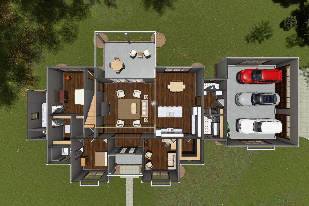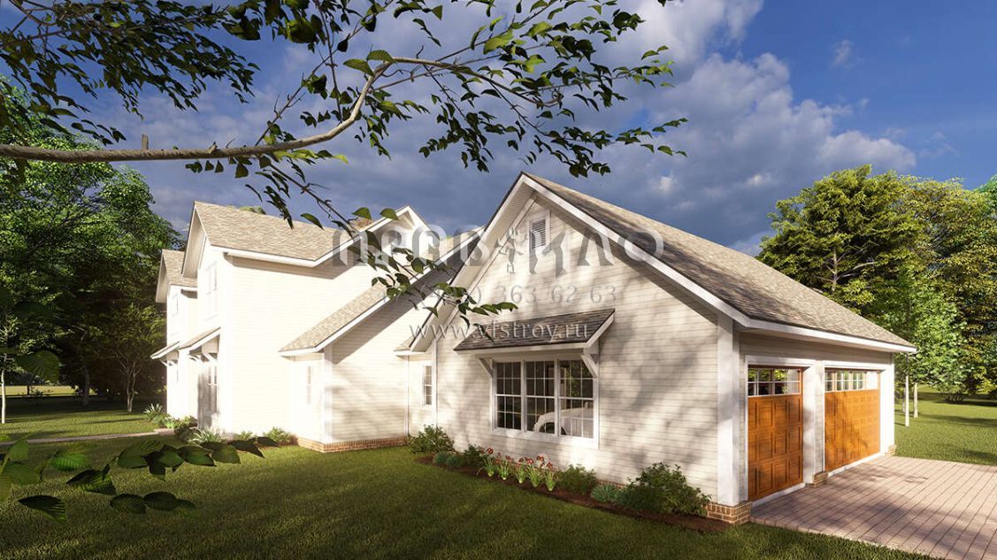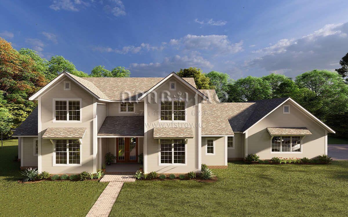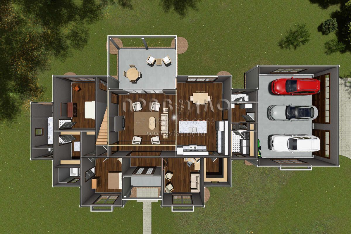 Проект двухэтажного дома с гаражом на три и более машин в стиле Ранчо S5-244 (4848-00390)