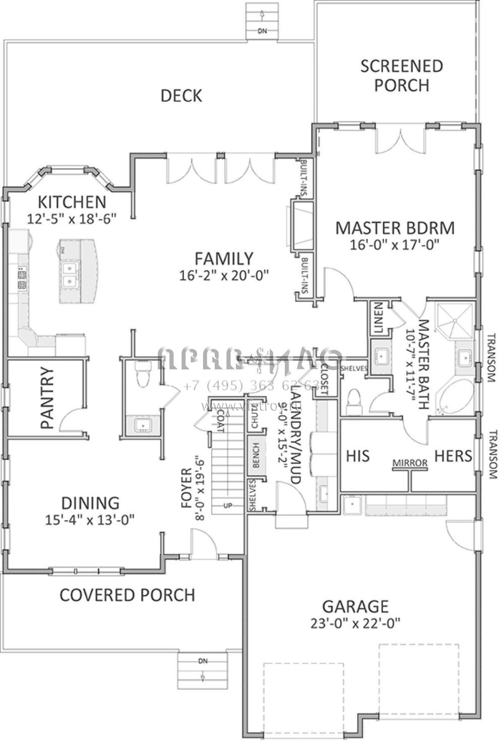 S5-244 (6849-00030) Это иностранный проект, для которого требуется адаптация под нормы, действующие в Российской Федерации. Вы видите проект дома в стиле Ранчо. В этом доме сочетаются черты сельской постройки и аскетичность лофта. Внутри жильцы смогут проводить время с максимальным комфортом. Обратим внимание, что сейчас на планировках все размеры представлены в футах. Для перевода в метры вам необходимо значение в футах умножить на 0,3048.