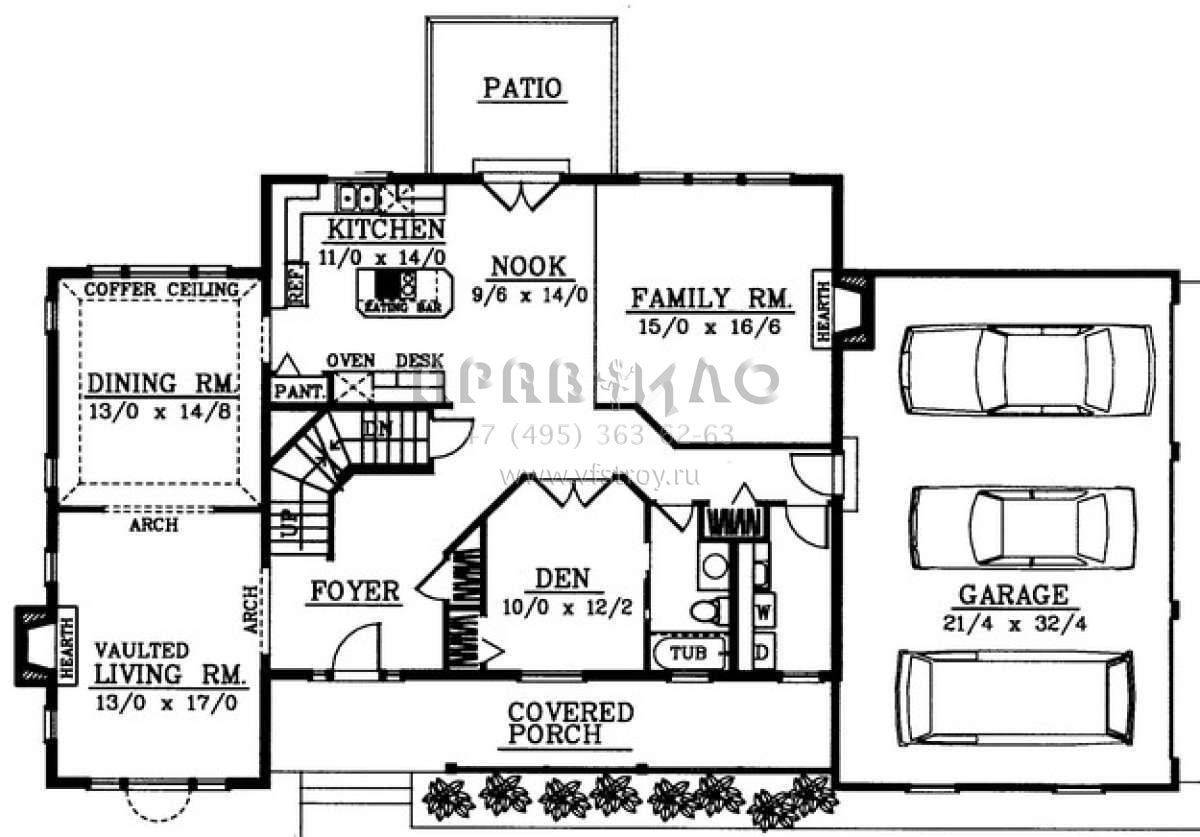 Проект двухэтажного дома с гаражом на три и более машин в стиле Ранчо S5-244 (692-00084)