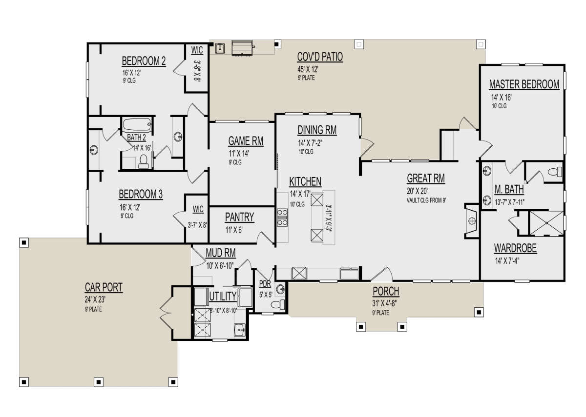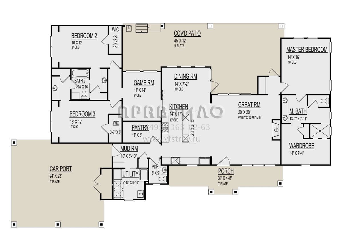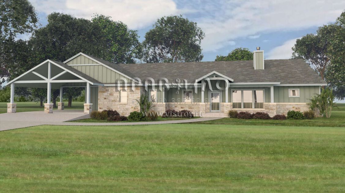 Проект одноэтажного дома с гаражом на две машины в стиле Ранчо S5-244 (9300-00057)