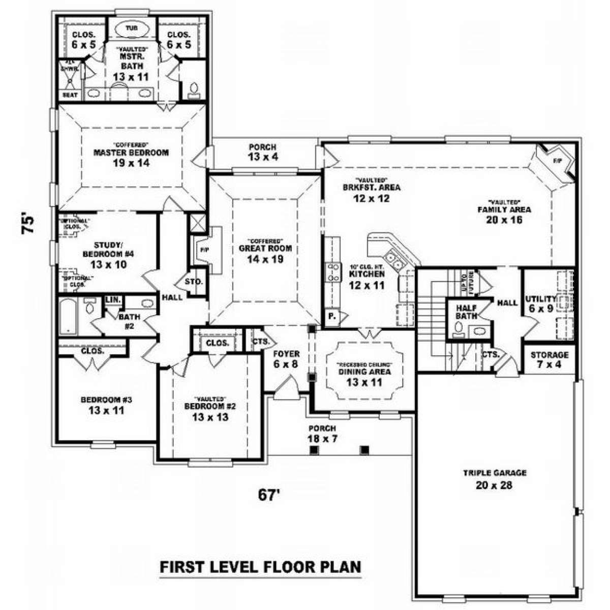 Проект двухэтажного дома с гаражом на три и более машин в стиле Ранчо S5-245 (053-01905)