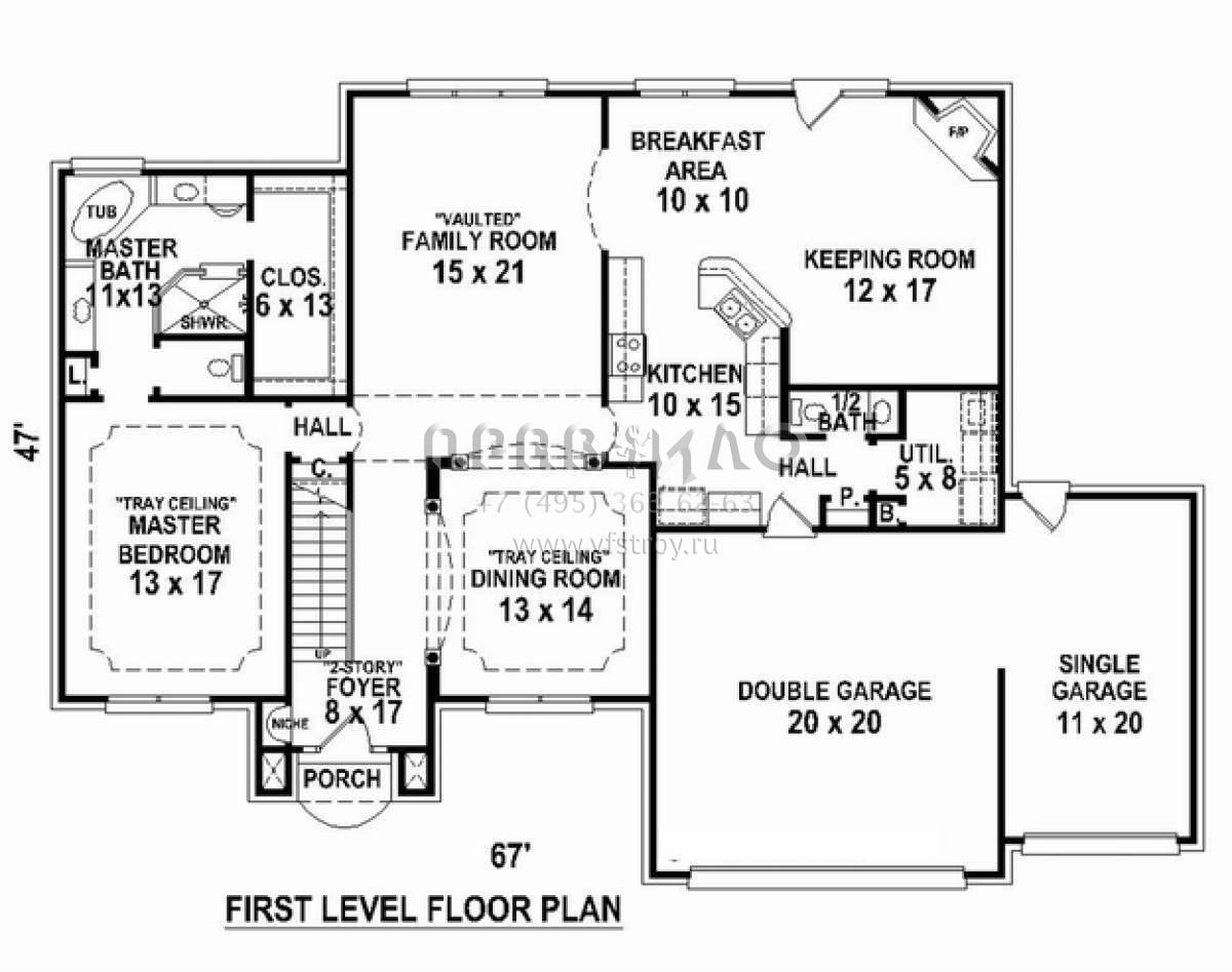 Проект двухэтажного дома с гаражом на три и более машин в стиле Ранчо S5-245 (053-02349)