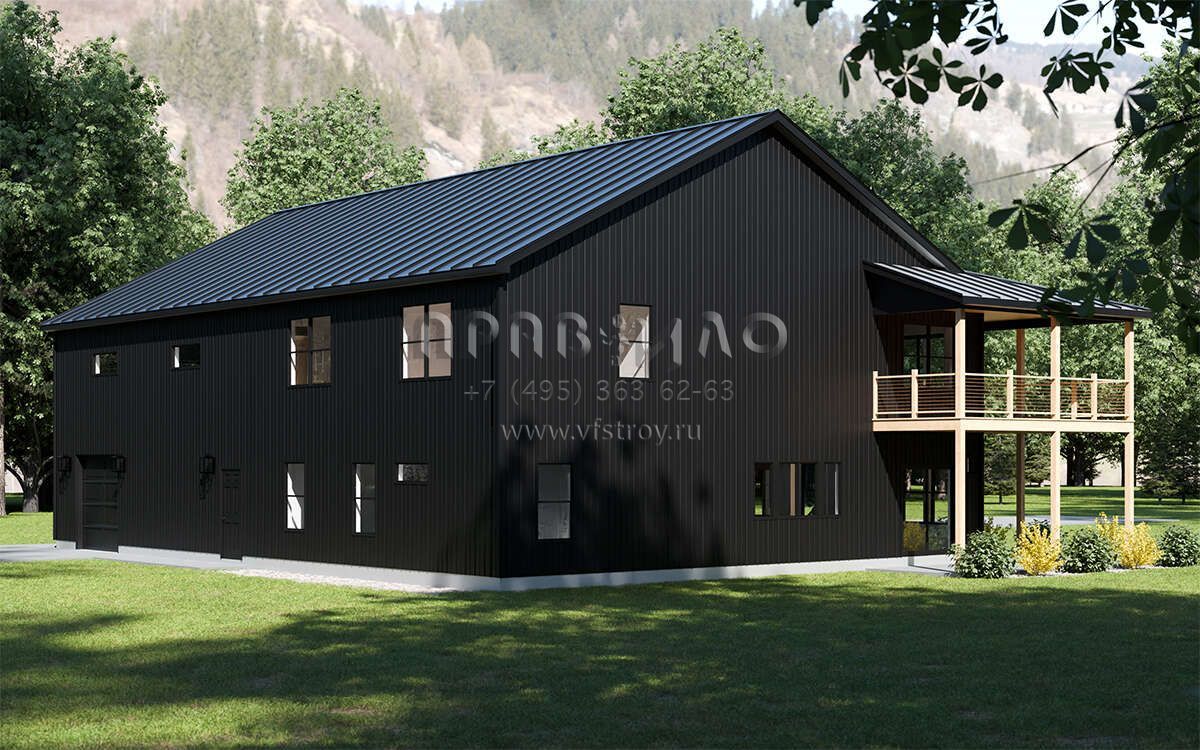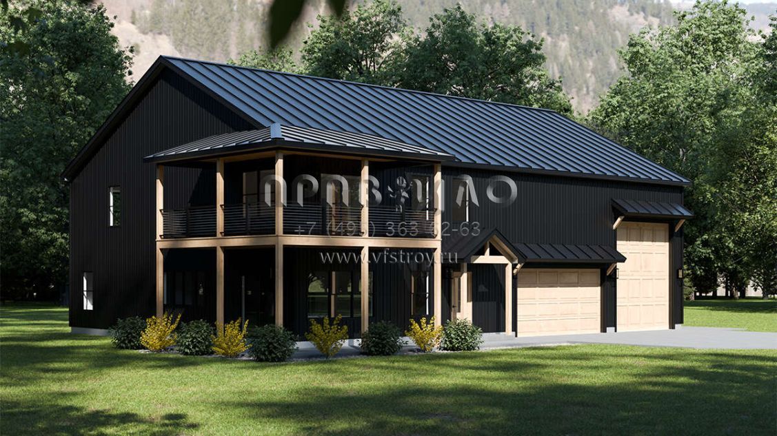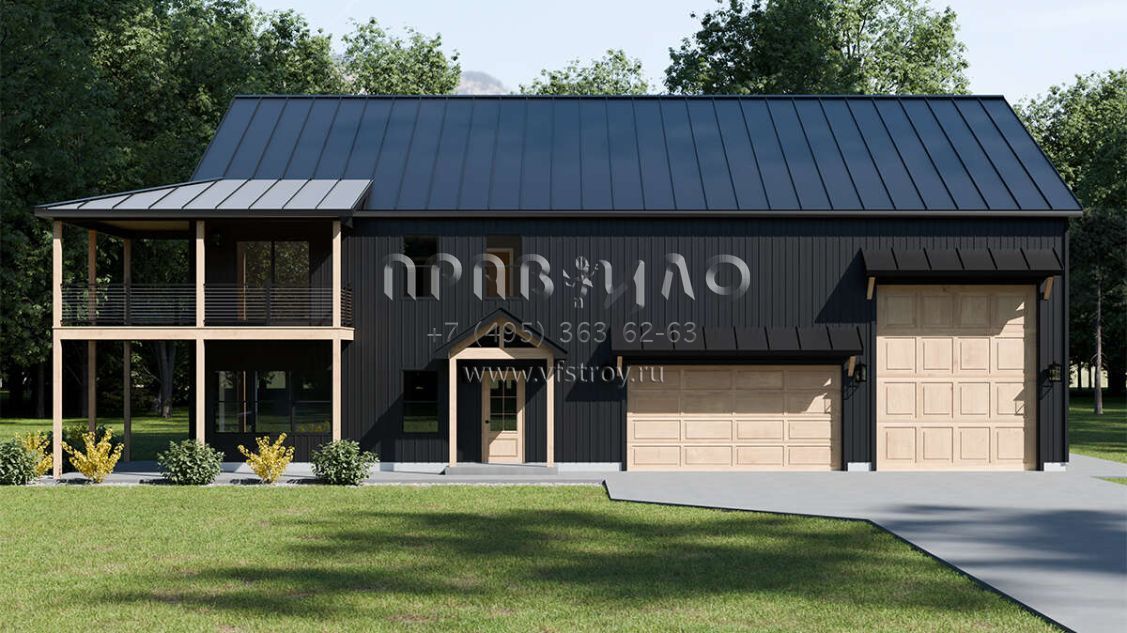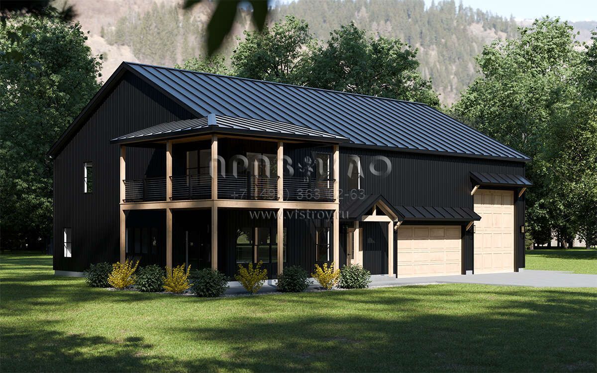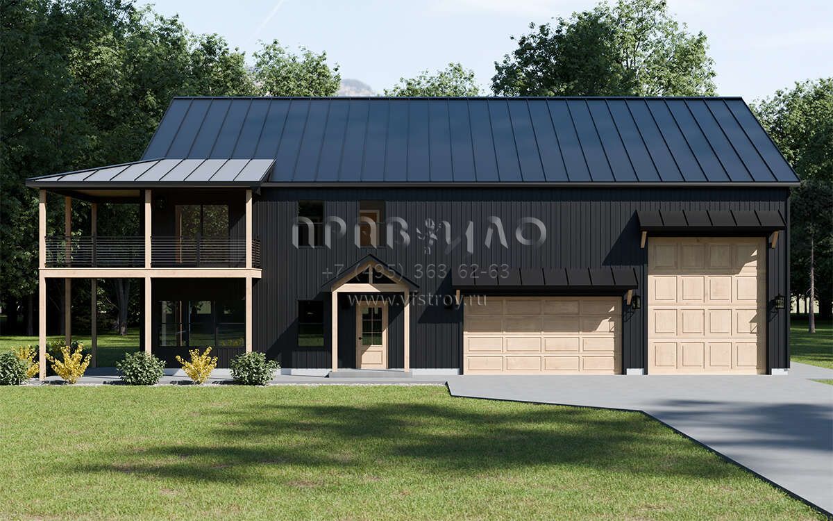 Проект двухэтажного дома с гаражом на три и более машин в стиле БарнХаус S5-245 (1958-00033)
