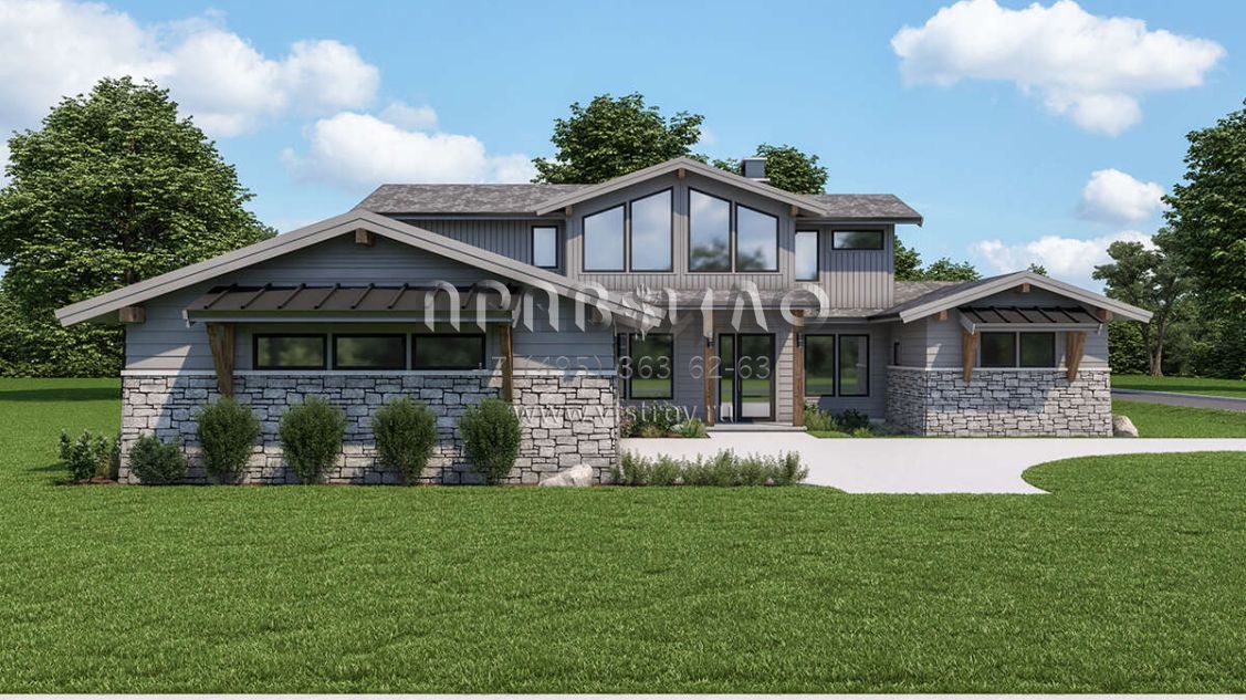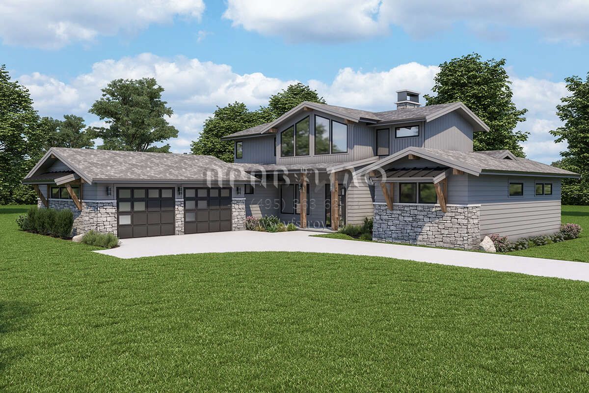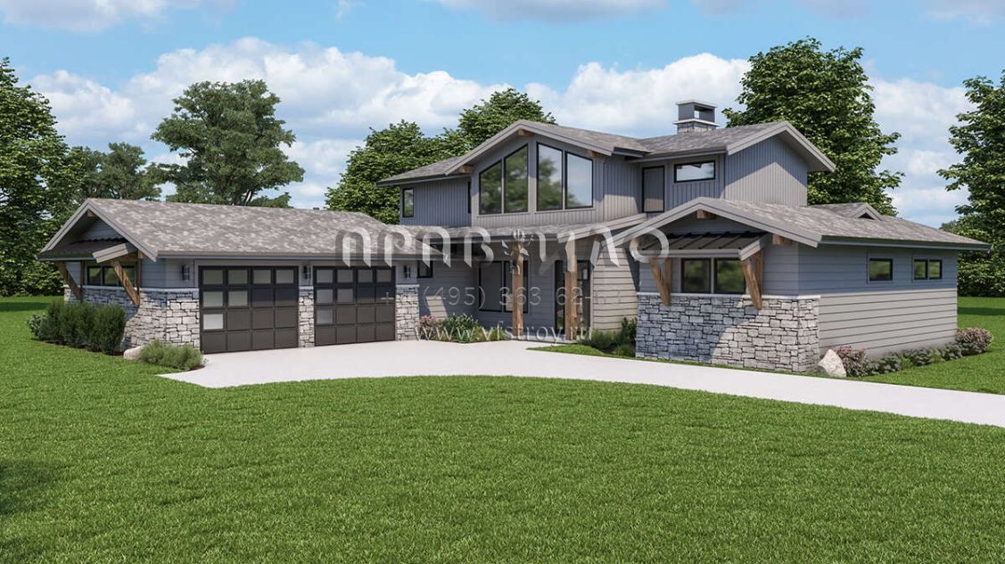 Проект двухэтажного дома с гаражом на две машины в современном стиле S5-245 (2464-00037)