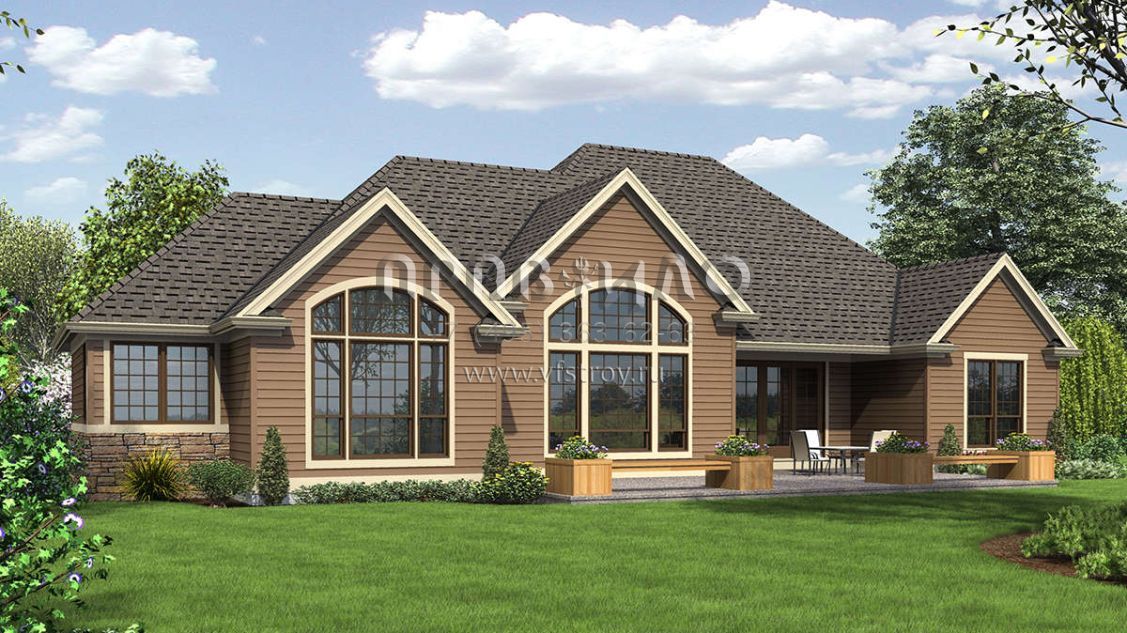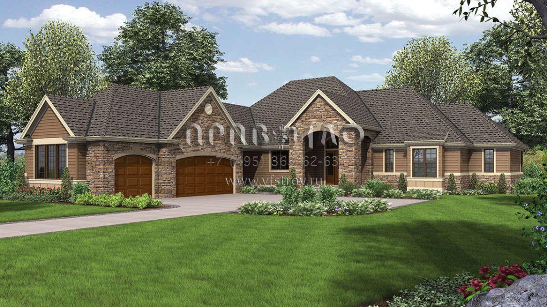 Проект одноэтажного дома с гаражом на три и более машин в стиле Ранчо S5-245 (2559-00692)