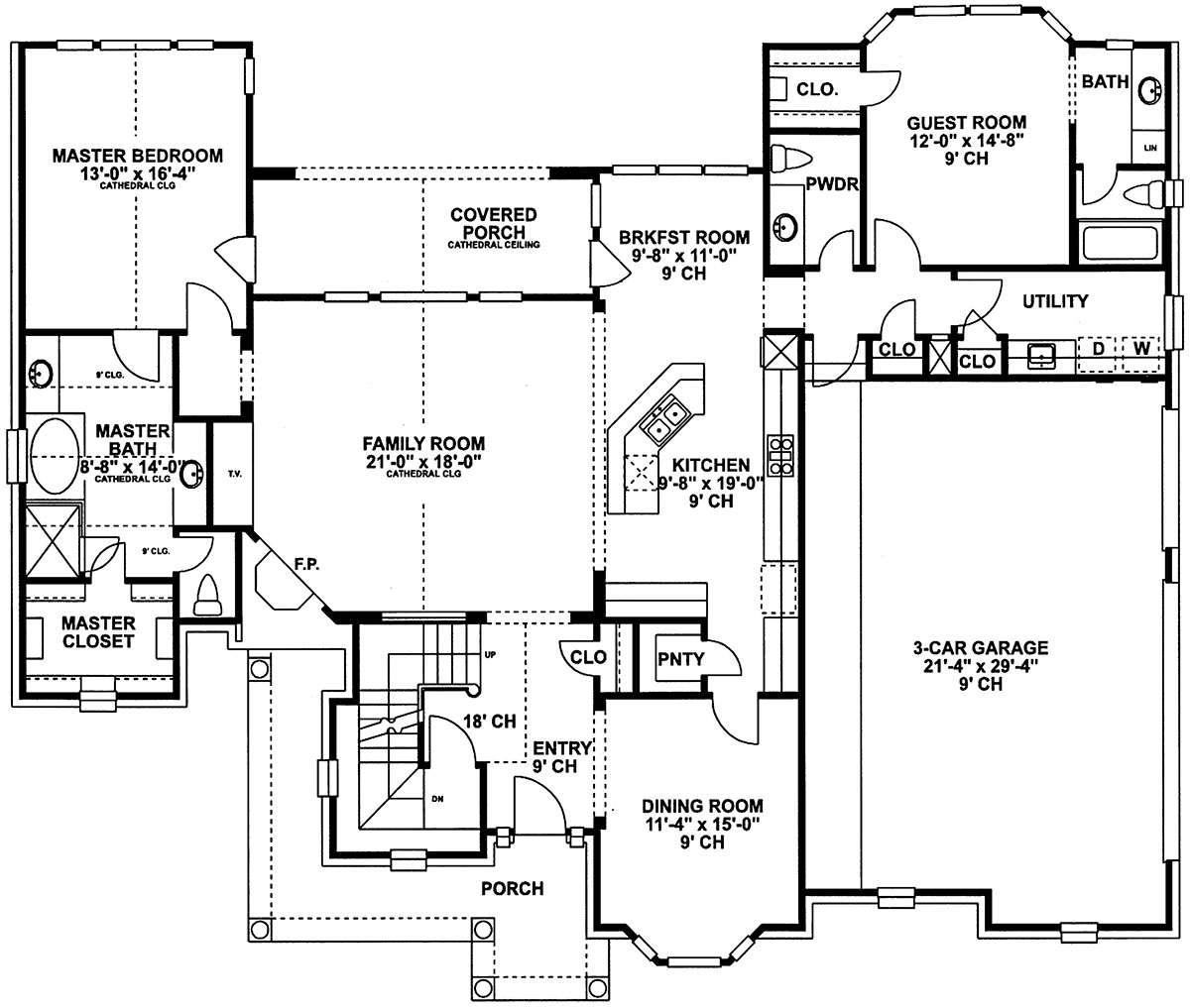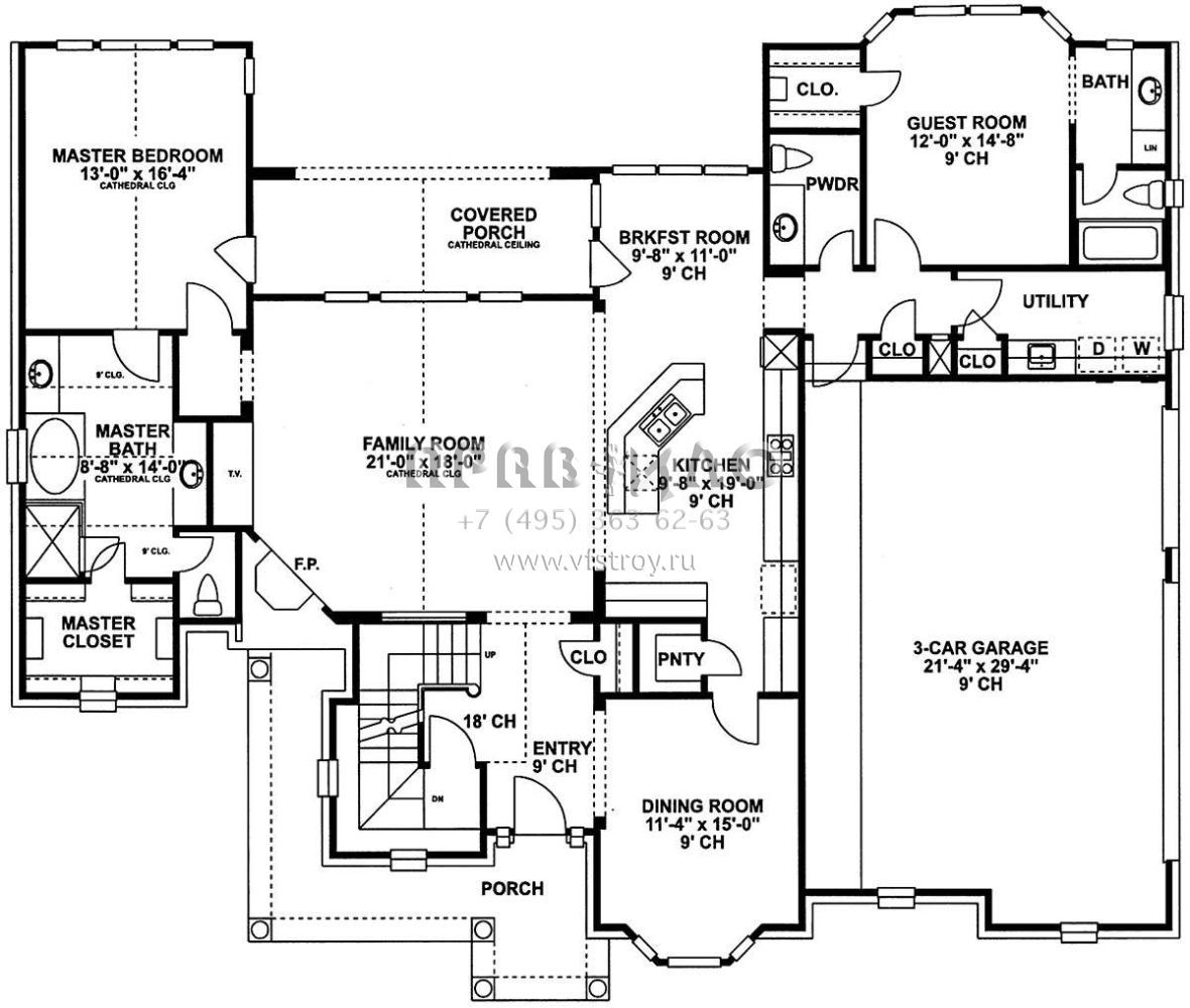 Проект двухэтажного дома с гаражом на три и более машин в стиле Ранчо S5-245 (402-00992)