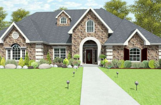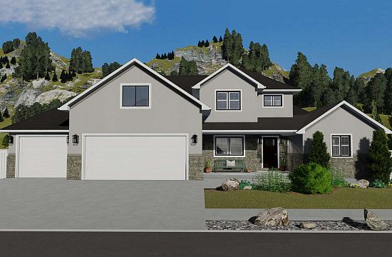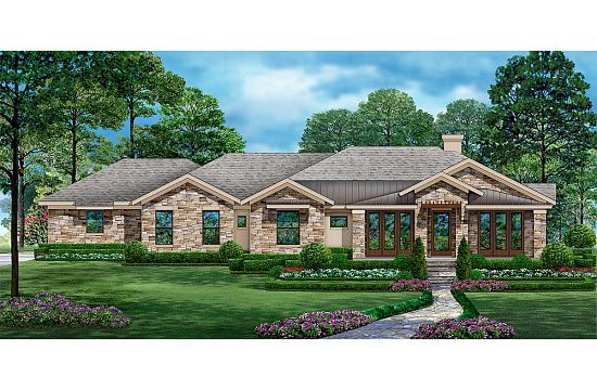 Проект одноэтажного дома с гаражом на три и более машин в английском стиле S5-245 (402-01528)