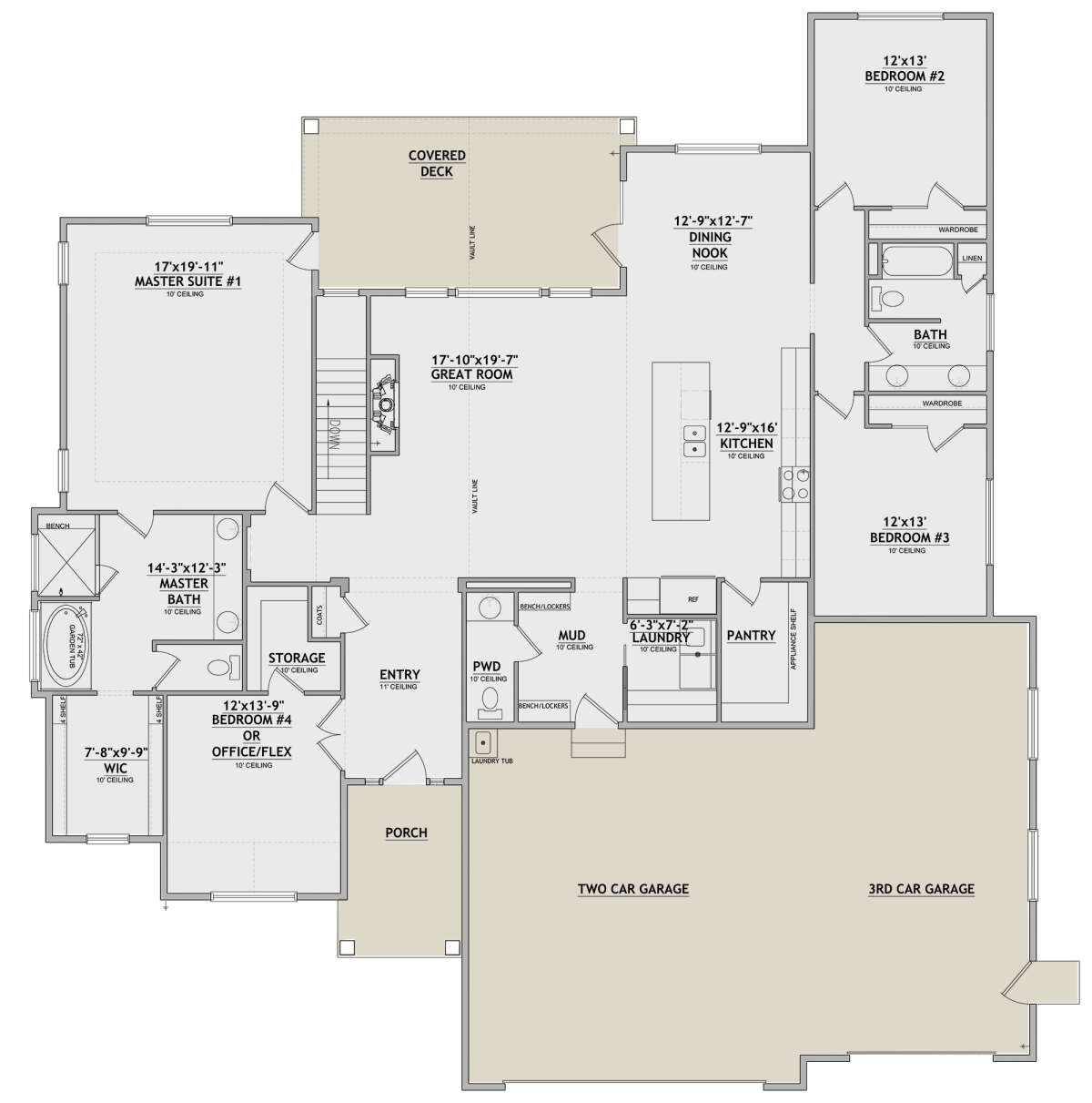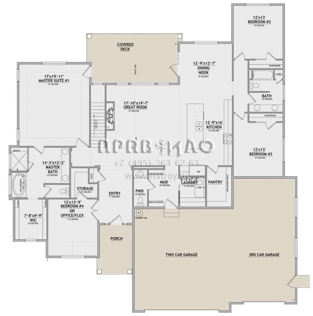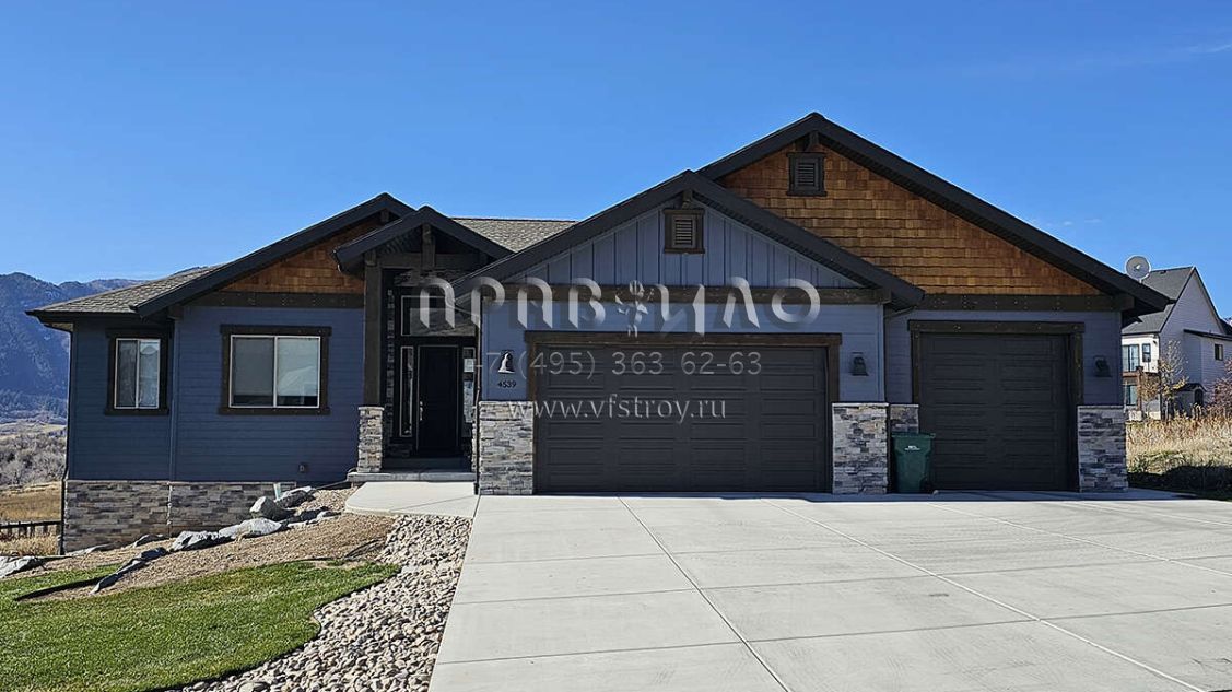 Проект одноэтажного дома с гаражом на три и более машин в американском стиле S5-245 (8768-00142)