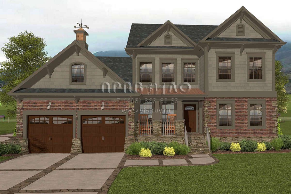 Проект двухэтажного дома с гаражом на три и более машин в американском стиле S5-246 (036-00226)