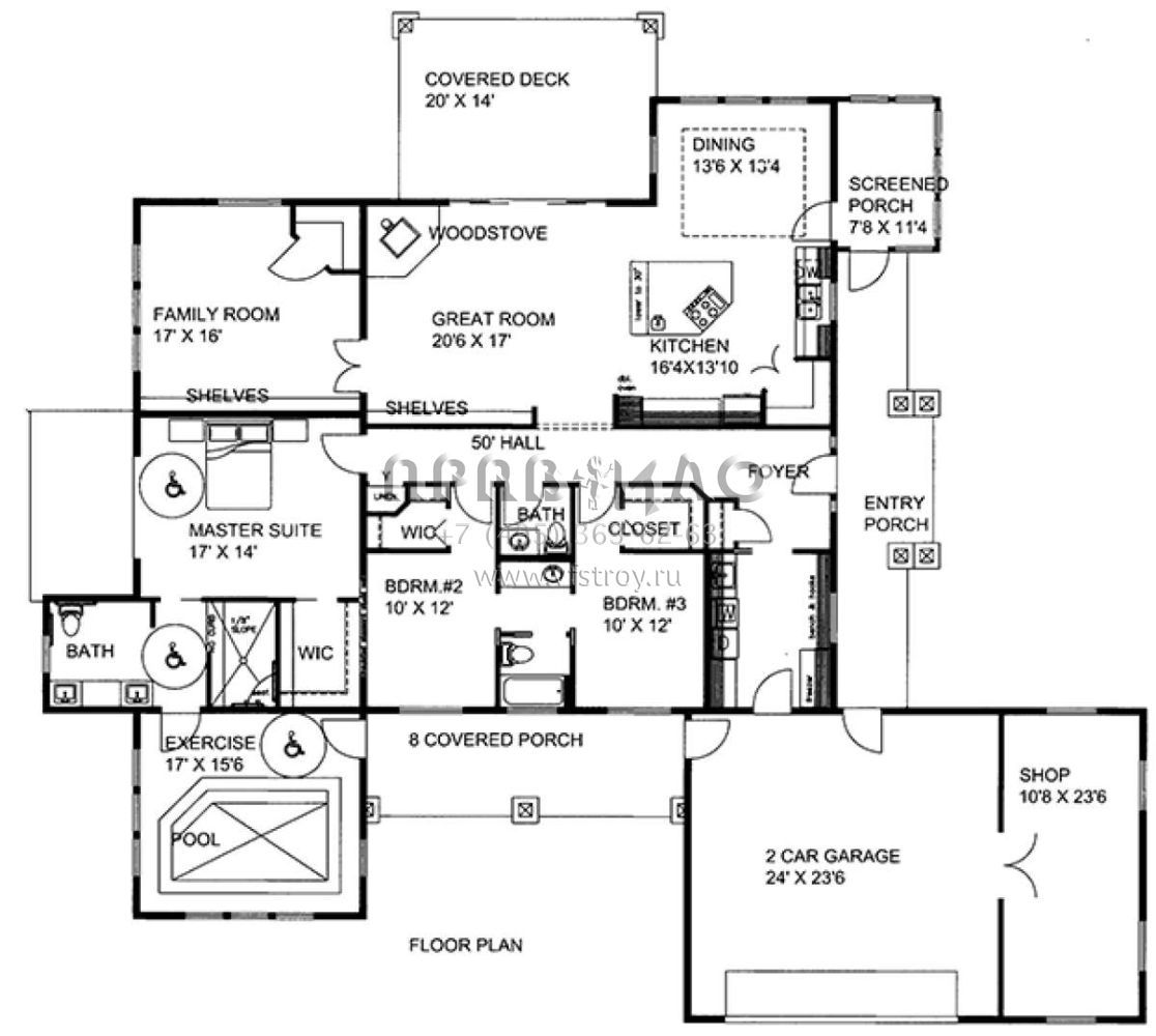 Поскольку этот проект разрабатывался иностранными архитекторами, для строительства дома требуется переработка проекта под действующие в России нормы. Данные визуализации проекта представлены для ознакомления с концепцией проекта. Проект разработан американским архитектурным бюро и представлен America's Best House Plans.