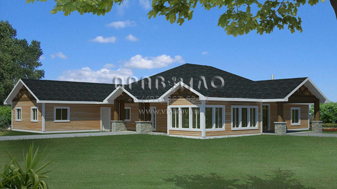 Большая площадь участка позволяет выбрать одноэтажный проект дома, особенно если в семье есть пожилые люди, инвалиды или маленькие дети.