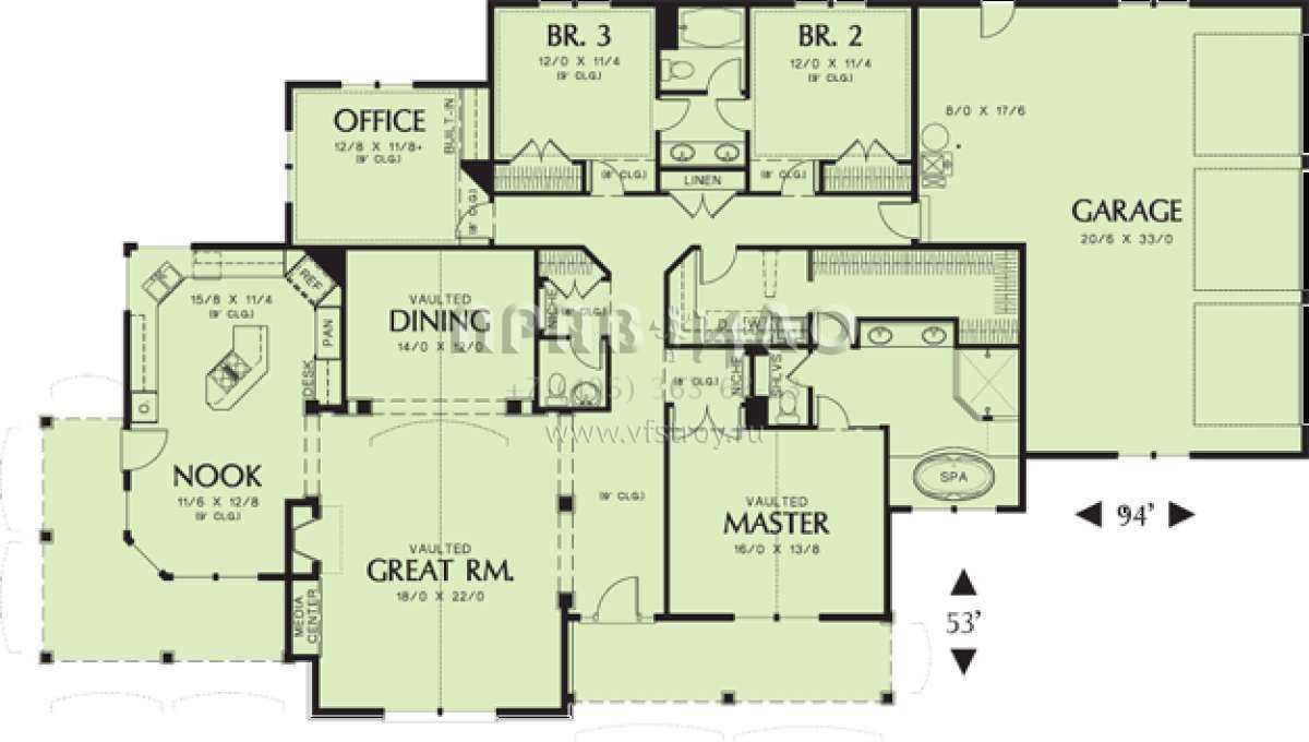 Поскольку этот проект разрабатывался иностранными архитекторами, для строительства дома требуется переработка проекта под действующие в России нормы. Данные визуализации проекта представлены для ознакомления с концепцией проекта. Проект разработан американским архитектурным бюро и представлен America's Best House Plans.