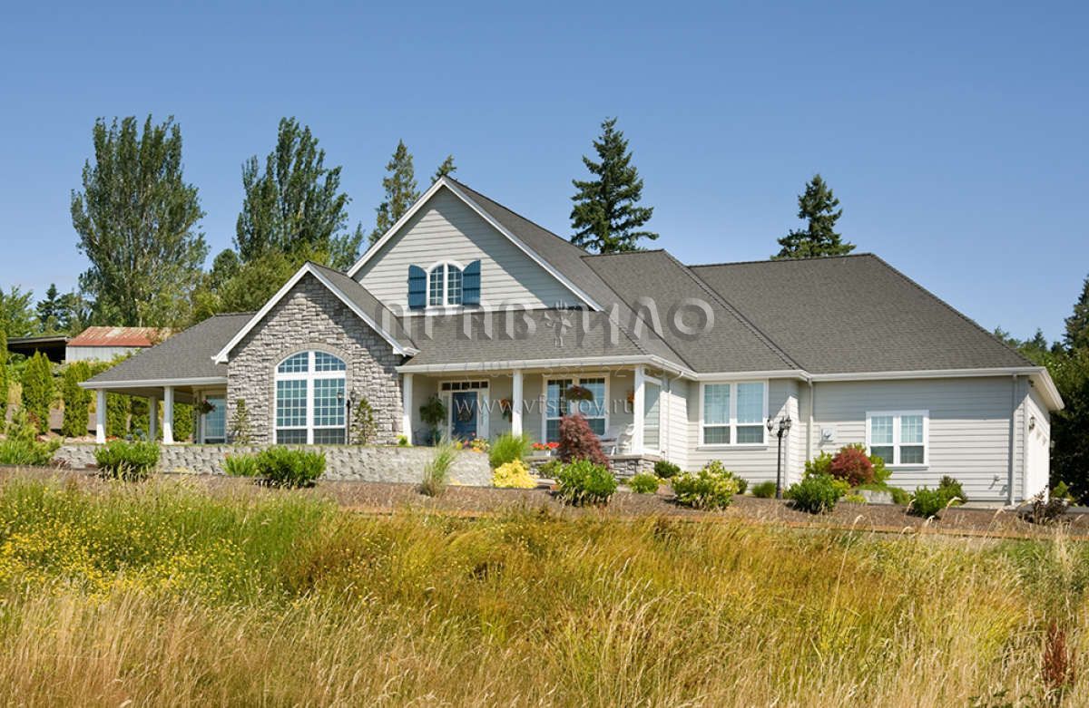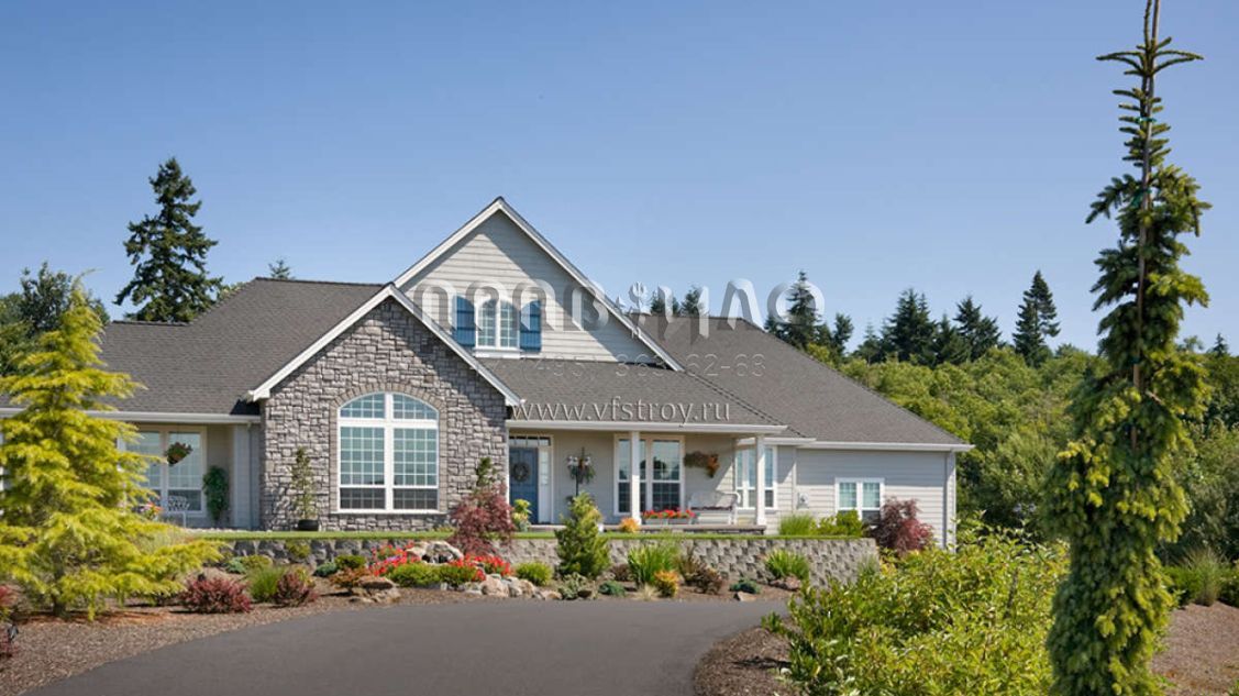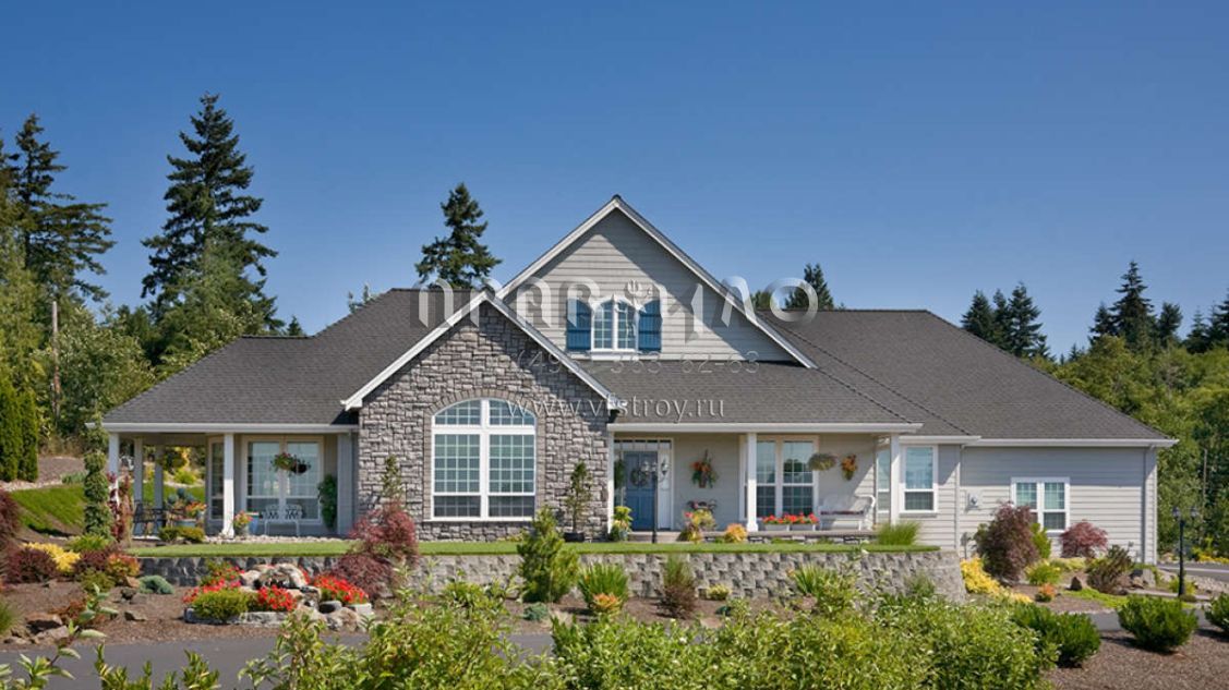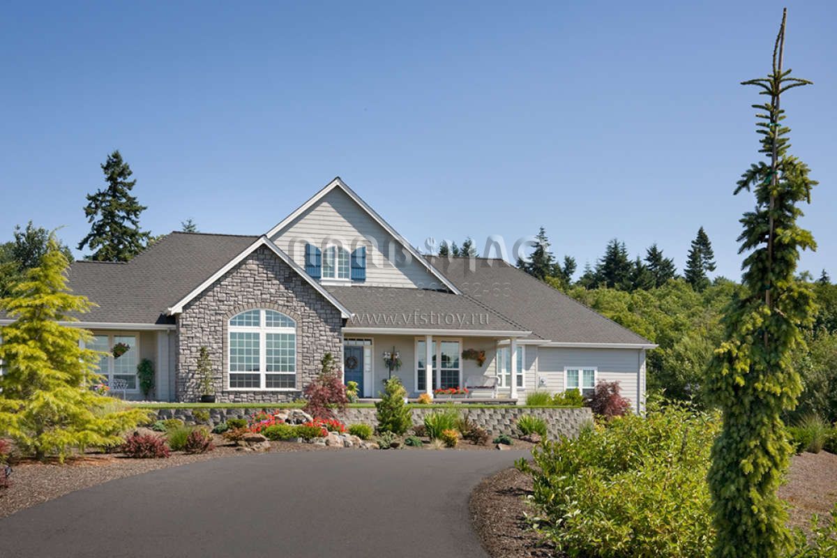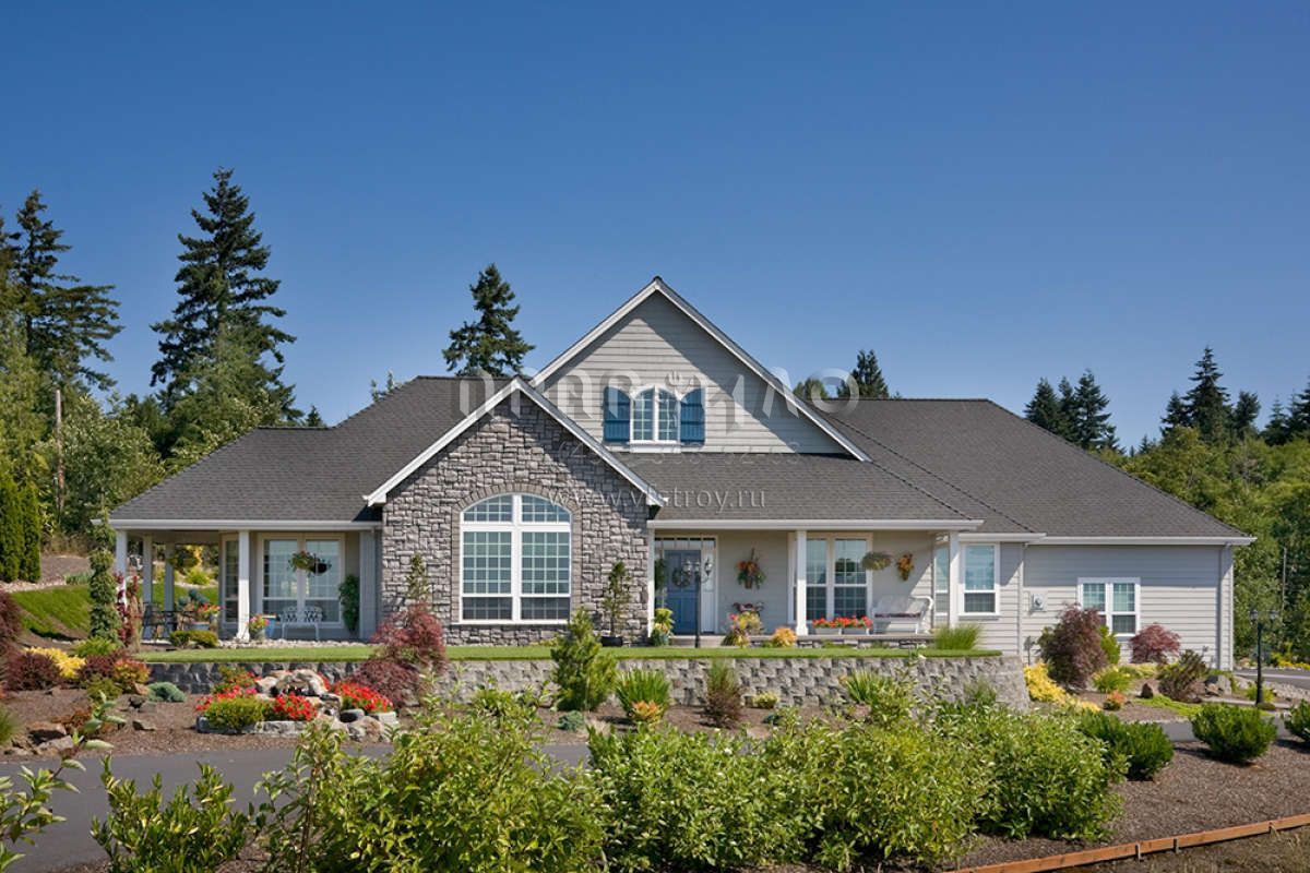 Большая площадь участка позволяет выбрать одноэтажный проект дома, особенно если в семье есть пожилые люди, инвалиды или маленькие дети.