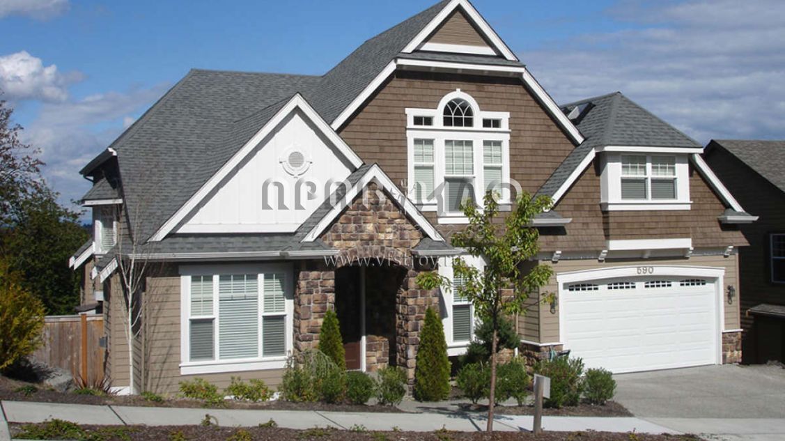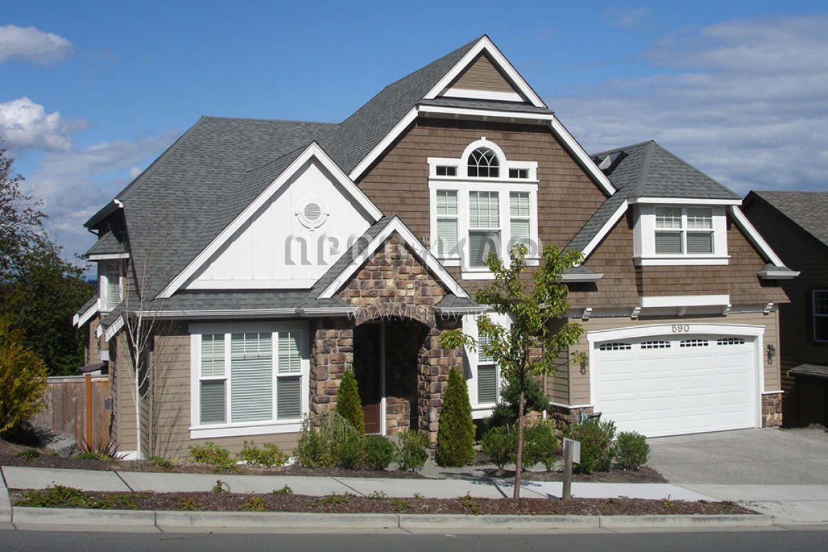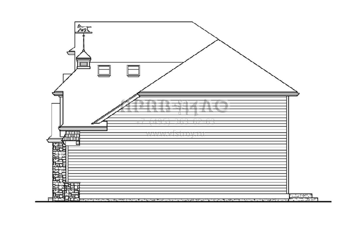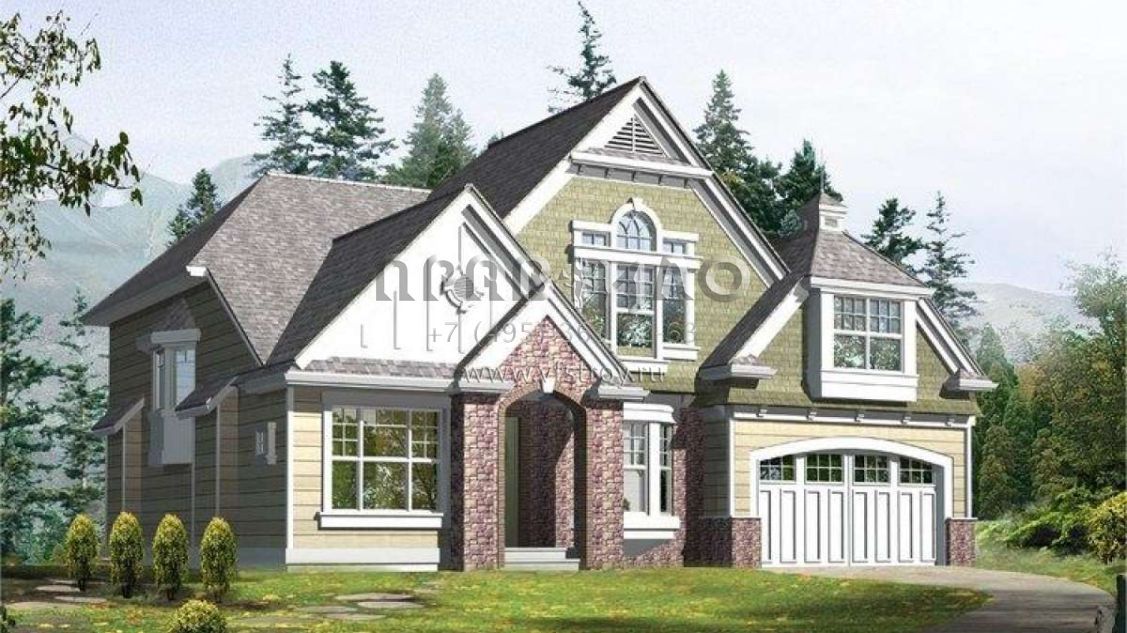 Это проект двухэтажного дома с гаражом на три и более машин жилой площадью 246 кв.м. Длина дома 12.2 м, ширина 15.2 м, высота 8.8 м. В доме четыре спальни и два санузла.