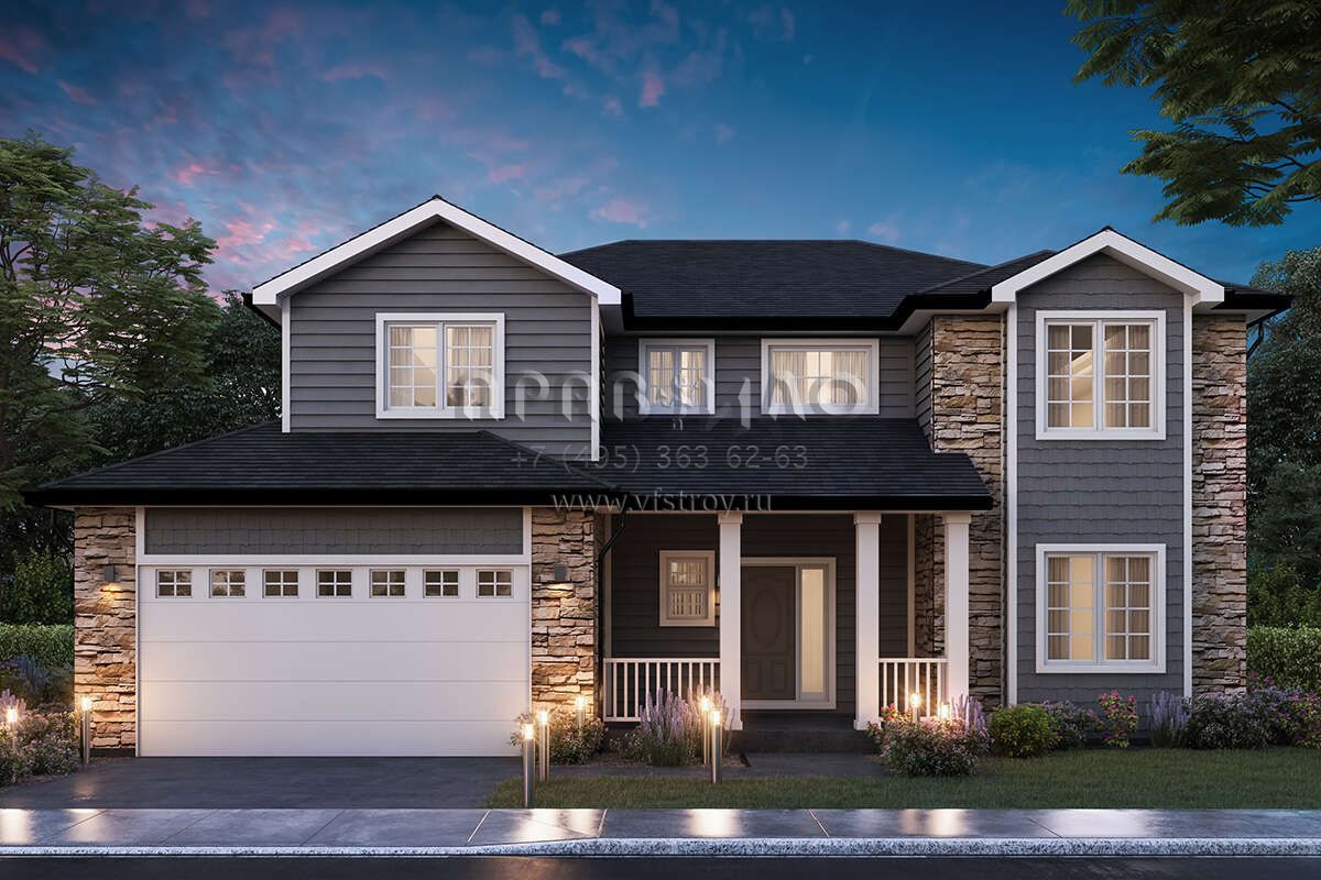 Проект двухэтажного дома с гаражом на две машины в американском стиле S5-246 (5244-00014)