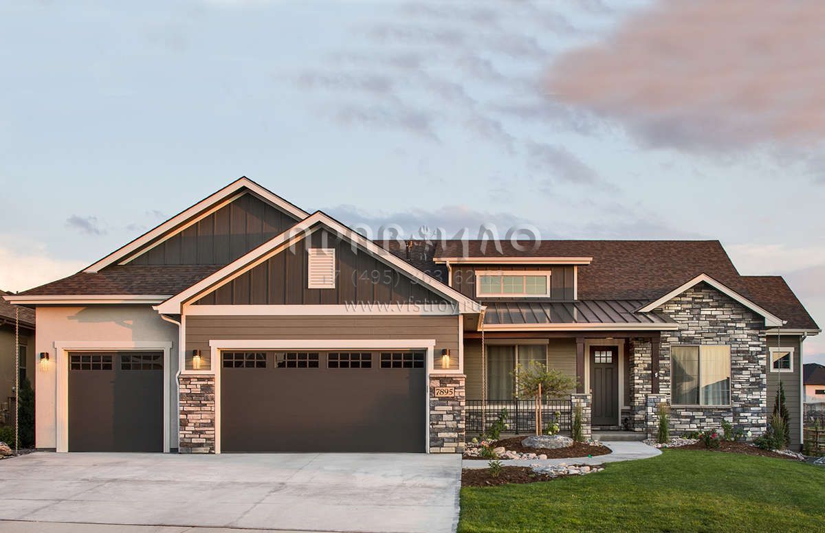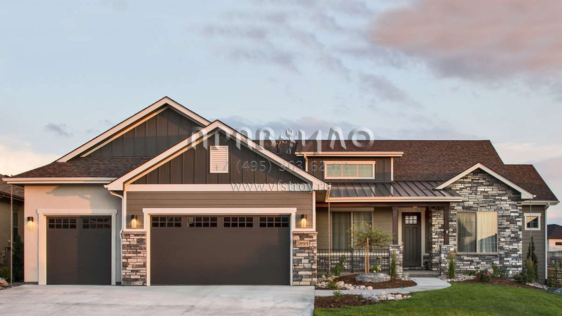 Проект одноэтажного дома с гаражом на три и более машин в американском стиле S5-246 (5631-00111)