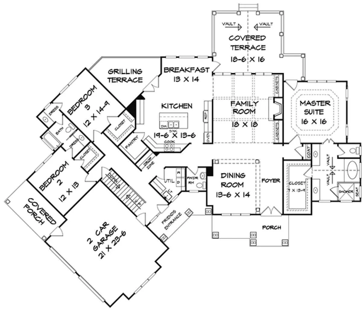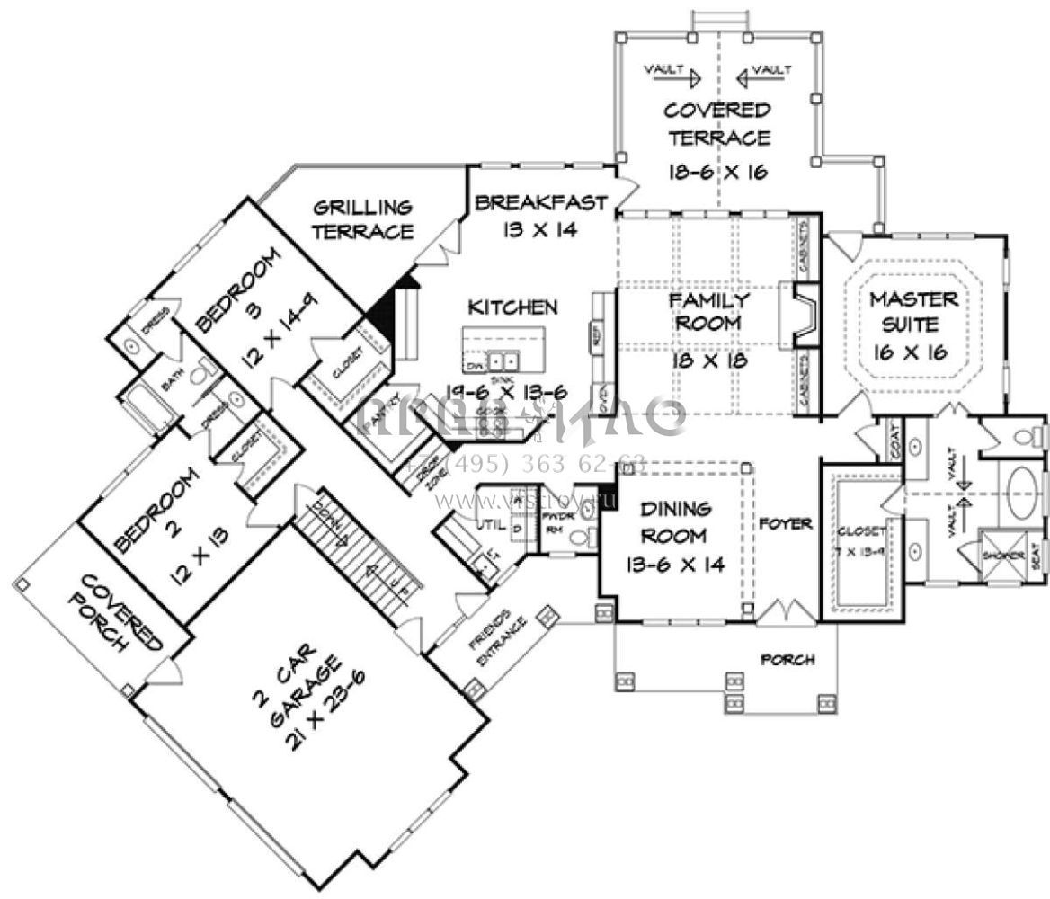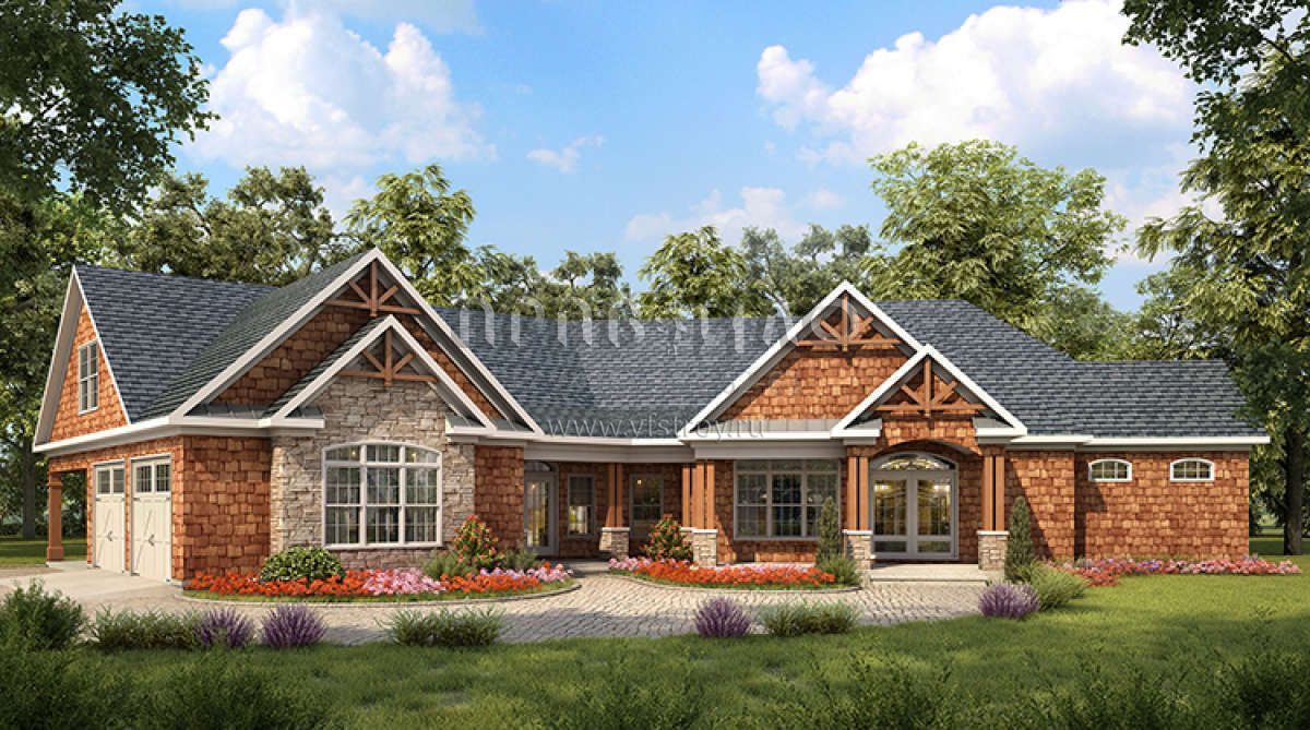 Проект одноэтажного дома с гаражом на две машины в американском стиле S5-246 (6082-00009)