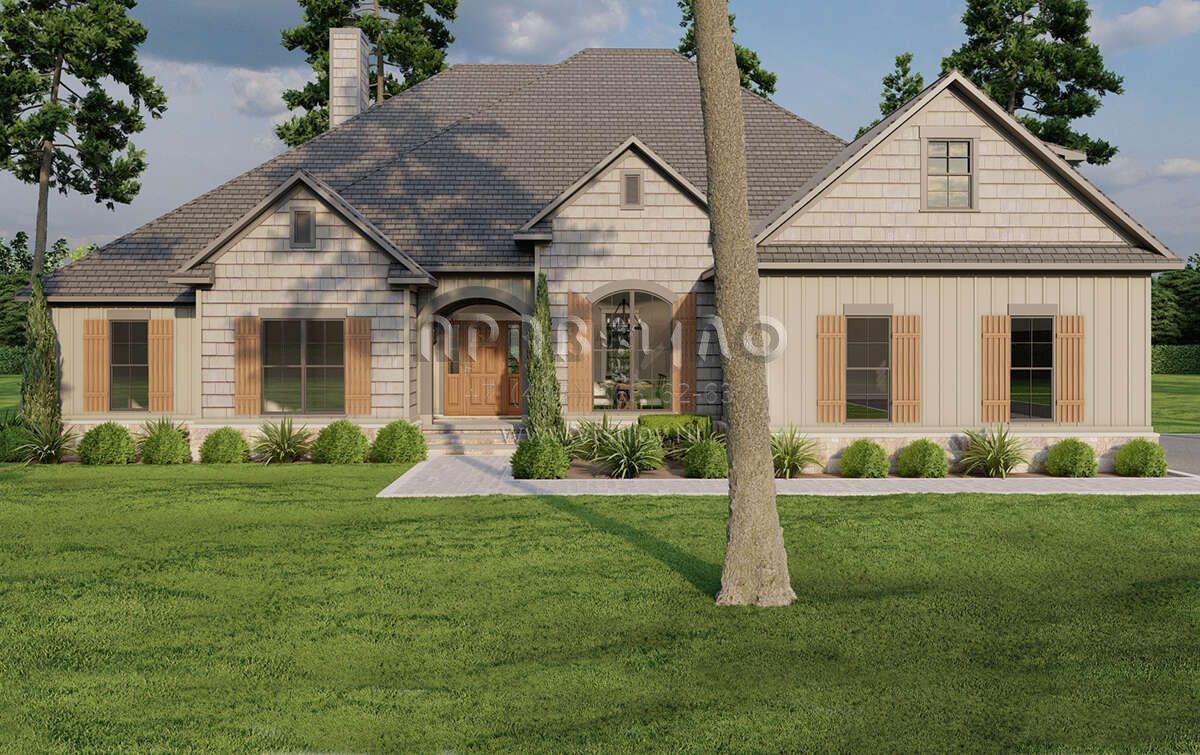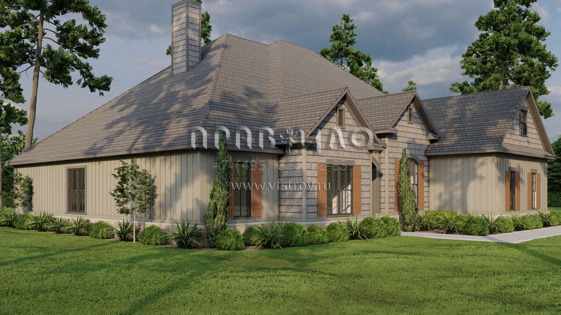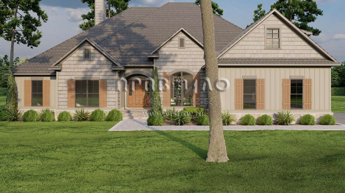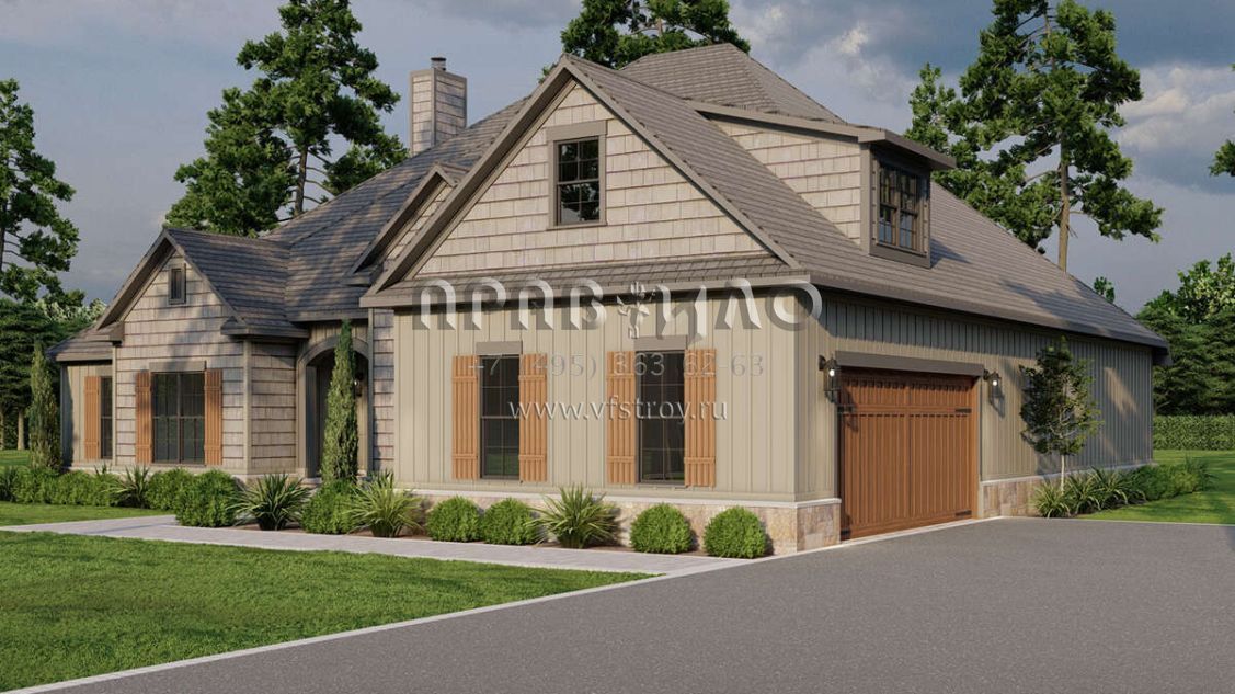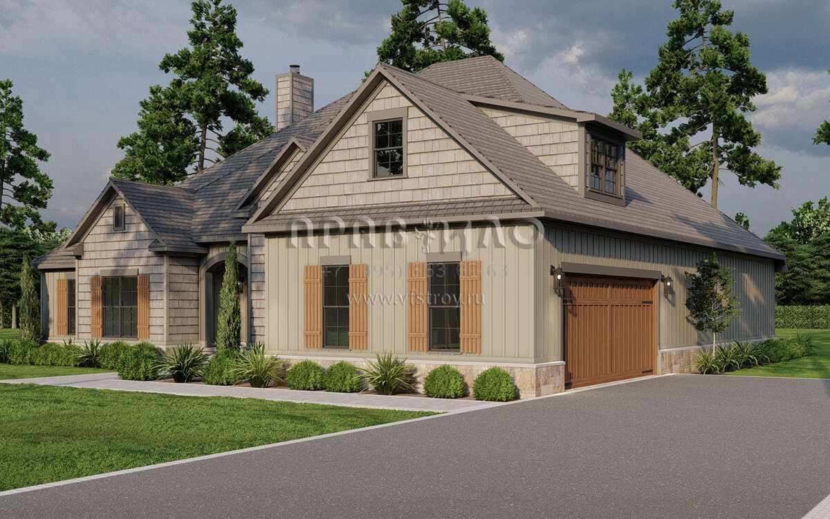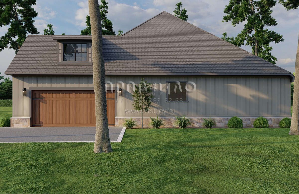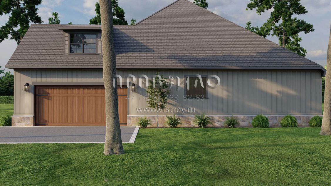 Проект двухэтажного дома с гаражом на две машины в стиле Ранчо S5-246 (8318-00086)