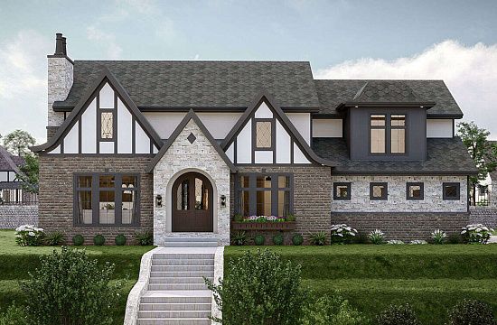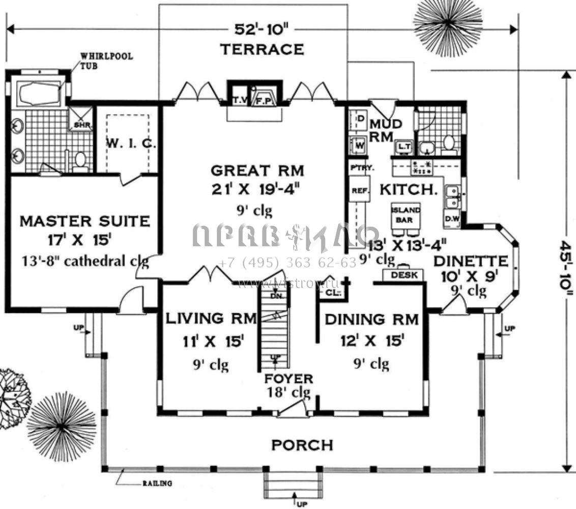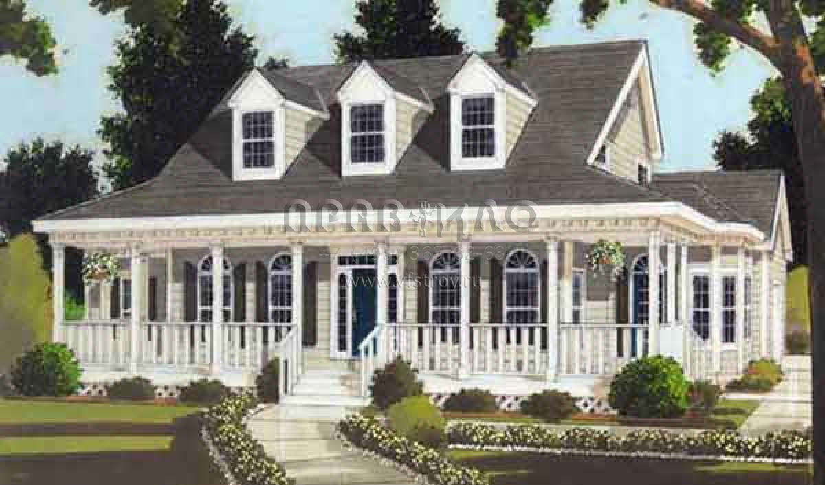 Проект двухэтажного дома с гаражом на три и более машин в стиле Ранчо S5-247 (033-00057)