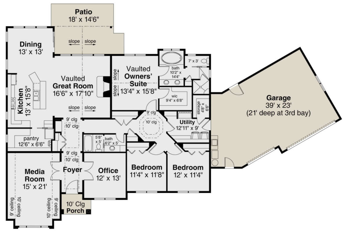S5-247 (035-00989) Это иностранный проект, для которого требуется адаптация под нормы, действующие в Российской Федерации. Вы видите проект дома в стиле Ранчо. В этом доме сочетаются черты сельской постройки и аскетичность лофта. Внутри жильцы смогут проводить время с максимальным комфортом. Обратим внимание, что сейчас на планировках все размеры представлены в футах. Для перевода в метры вам необходимо значение в футах умножить на 0,3048.