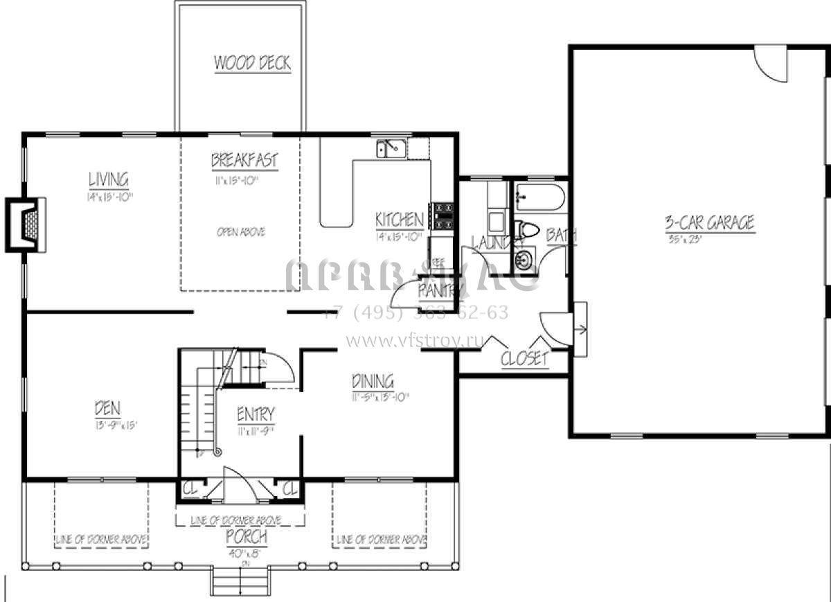 Проект двухэтажного дома с гаражом на три и более машин в стиле Ранчо S5-247 (1754-00024)