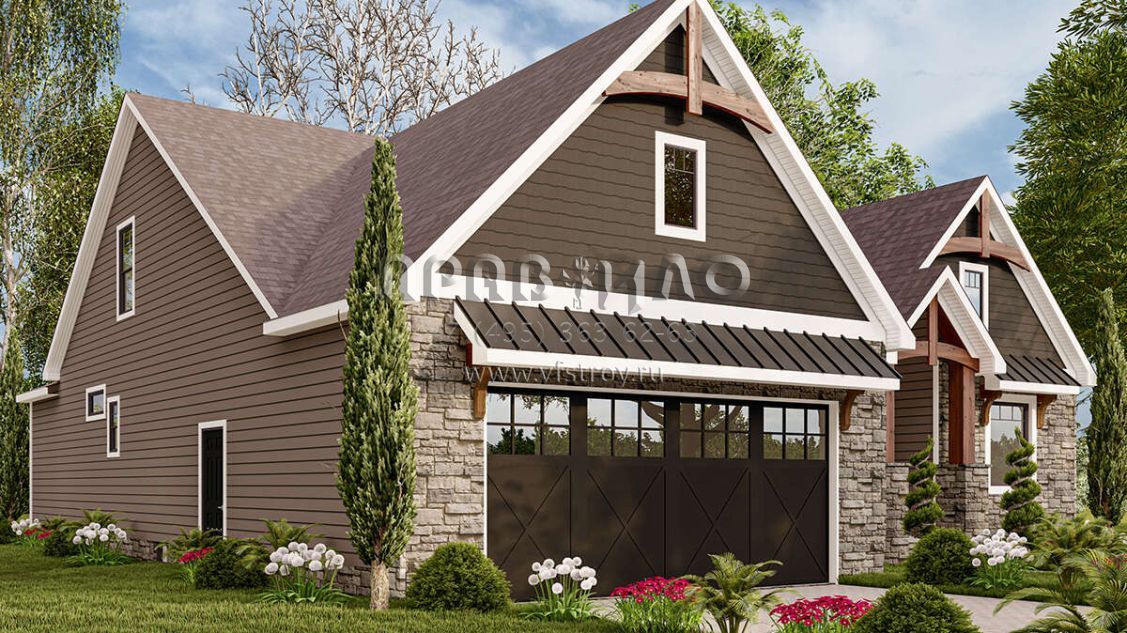 Проект двухэтажного дома с гаражом на две машины в американском стиле S5-247 (1958-00019)