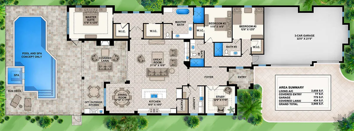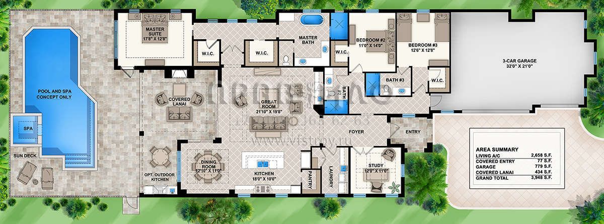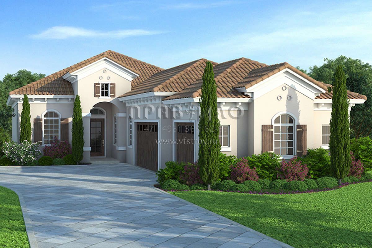 Проект одноэтажного дома с гаражом на три и более машин в прибрежном стиле S5-247 (207-00027)
