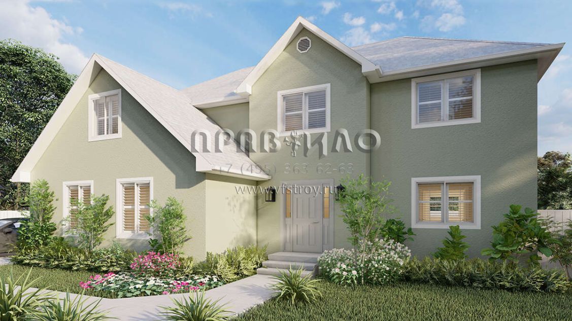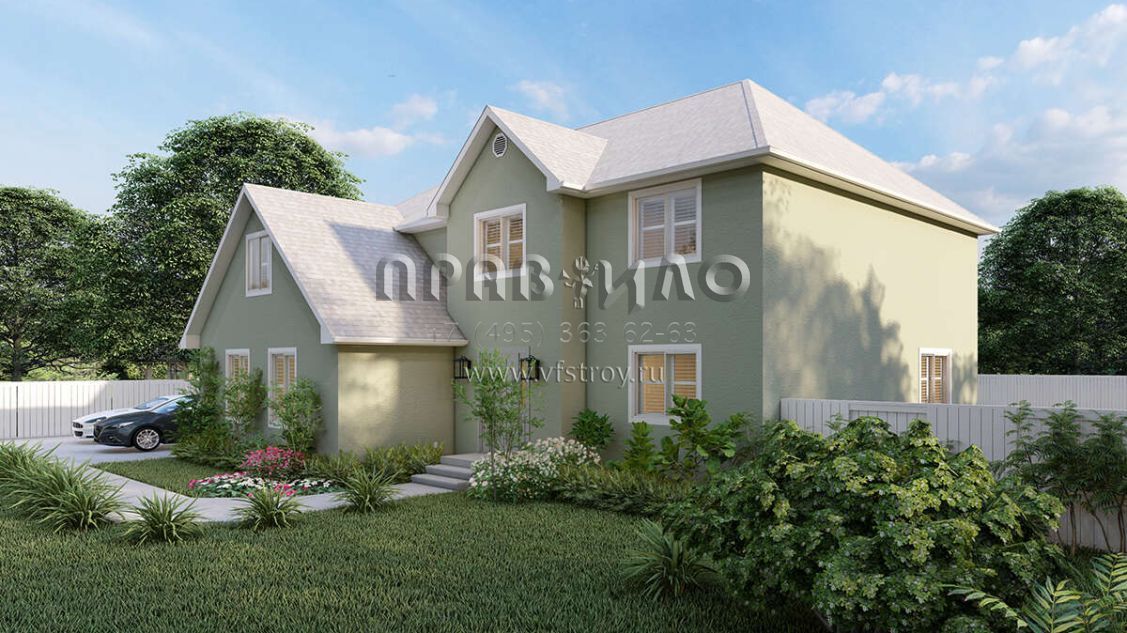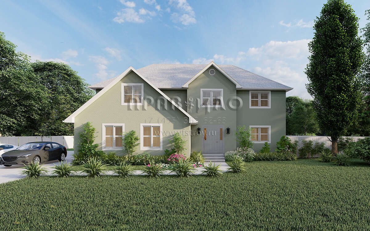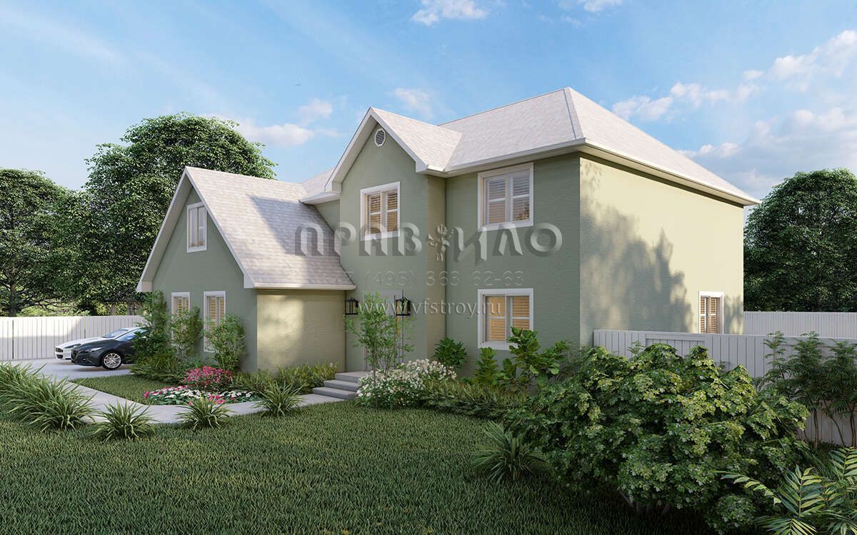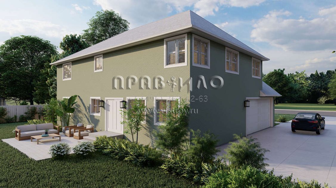 Проект двухэтажного дома с гаражом на две машины в стиле Ранчо S5-247 (2802-00025)