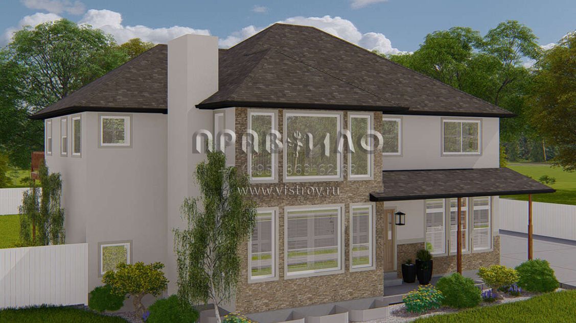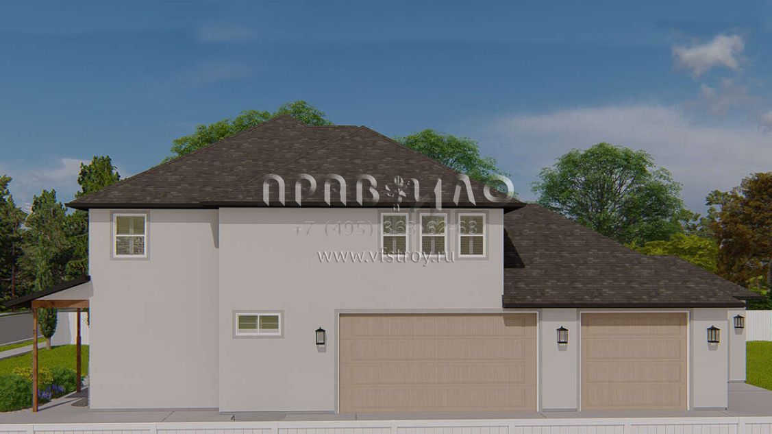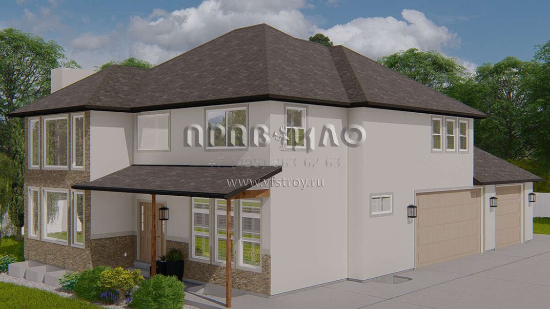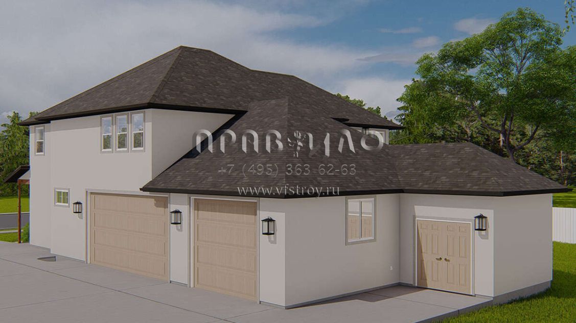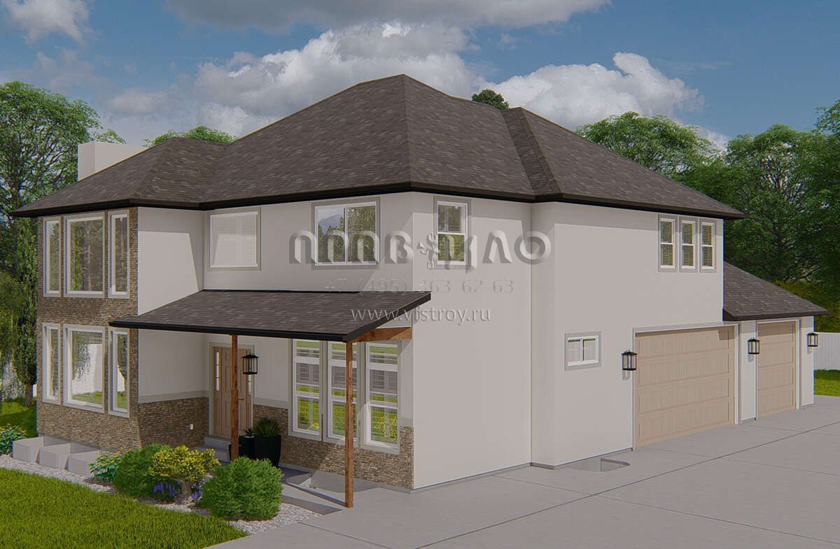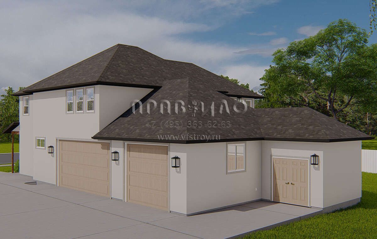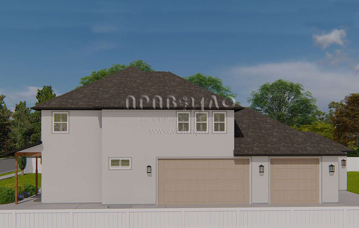 Проект двухэтажного дома с гаражом на три и более машин в стиле Ранчо S5-247 (2802-00165)