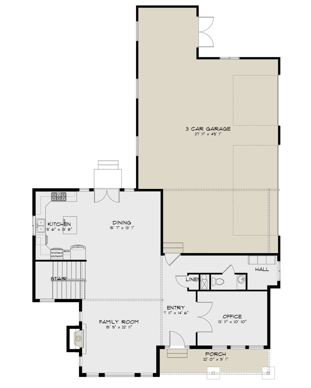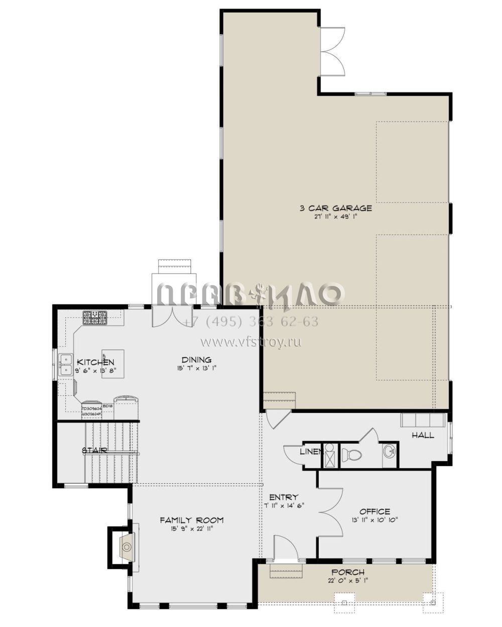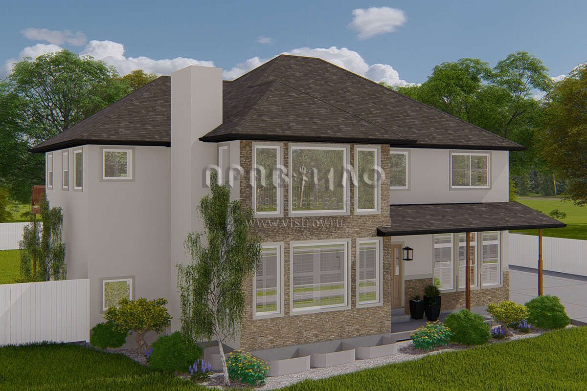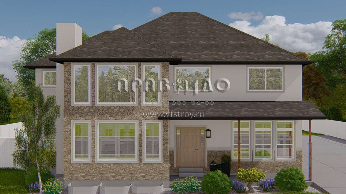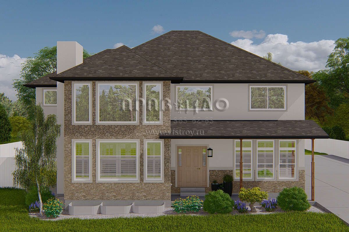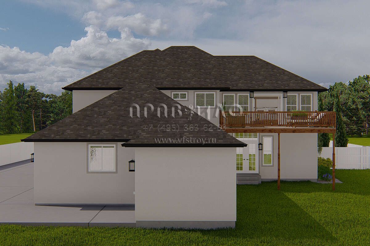 Проект двухэтажного дома с гаражом на три и более машин в стиле Ранчо S5-247 (2802-00165)