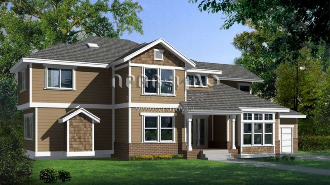 Проект двухэтажного дома с гаражом на две машины в стиле Ранчо S5-247 (692-00206)