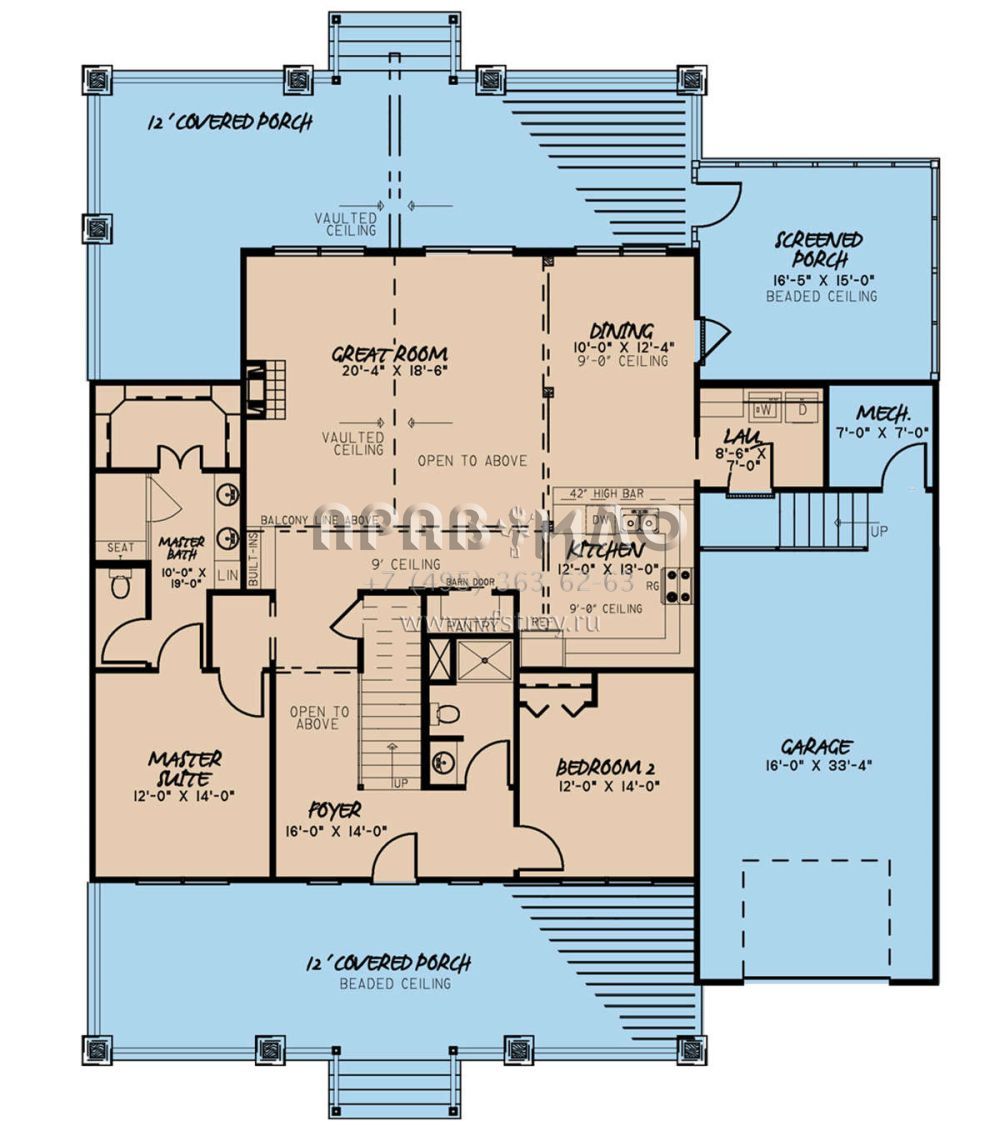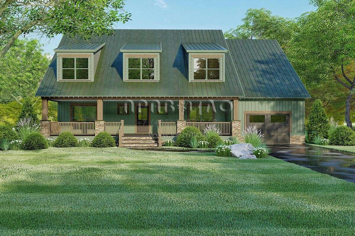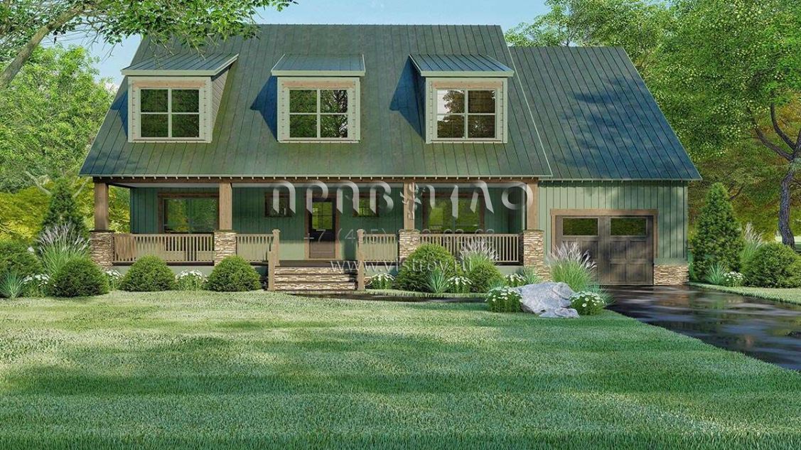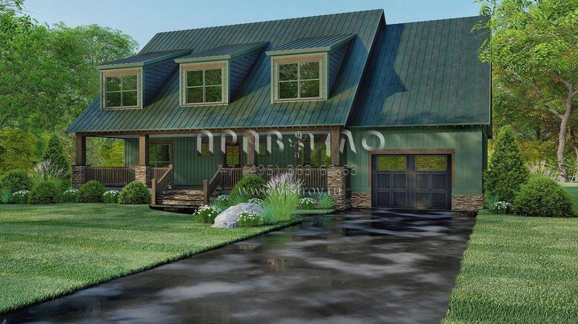 Проект двухэтажного дома с гаражом на одну машину в стиле Ранчо S5-247 (8318-00114)