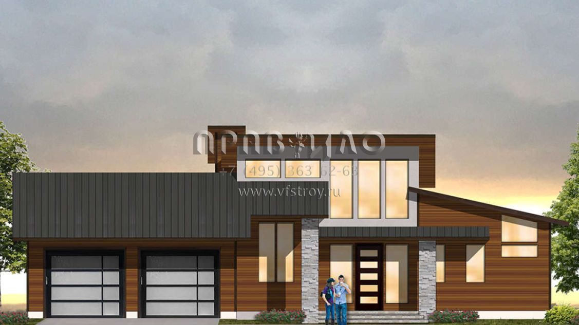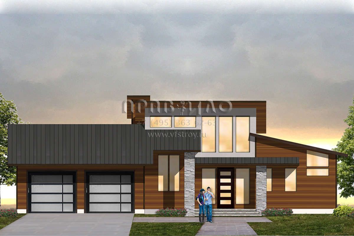 Проект двухэтажного дома с гаражом на две машины в современном стиле S5-247 (8504-00114)