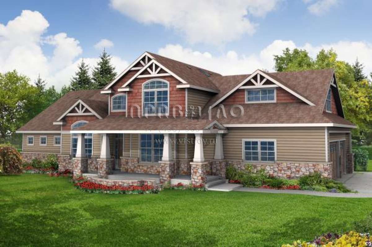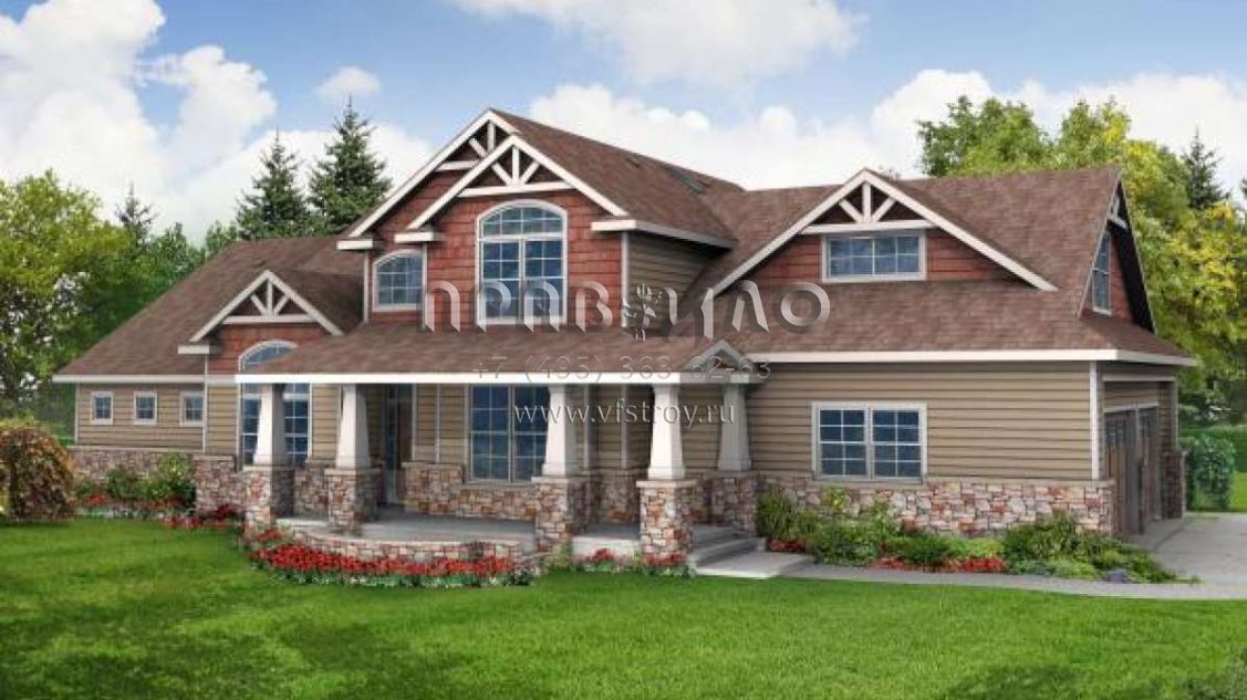 Проект двухэтажного дома с гаражом на три и более машин в стиле Ранчо S5-248 (035-00294)