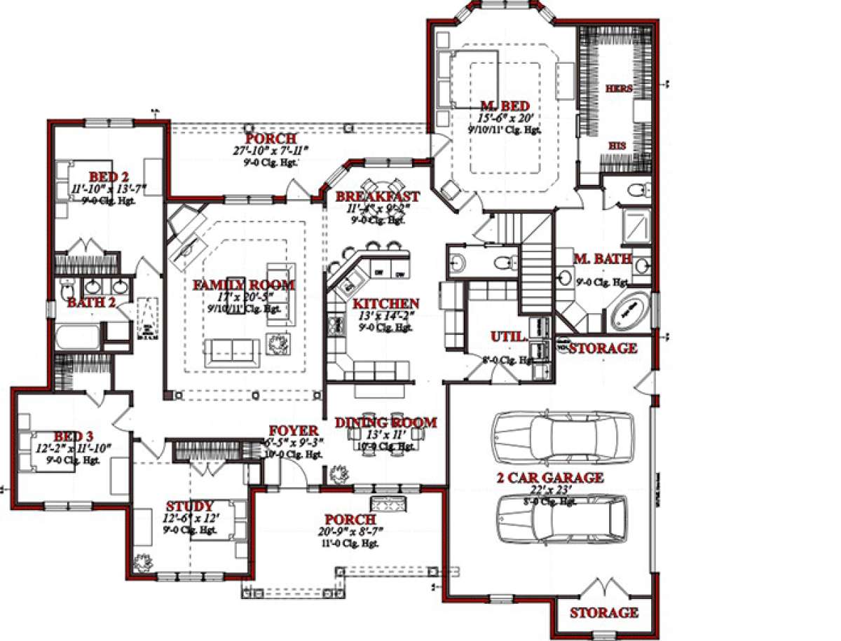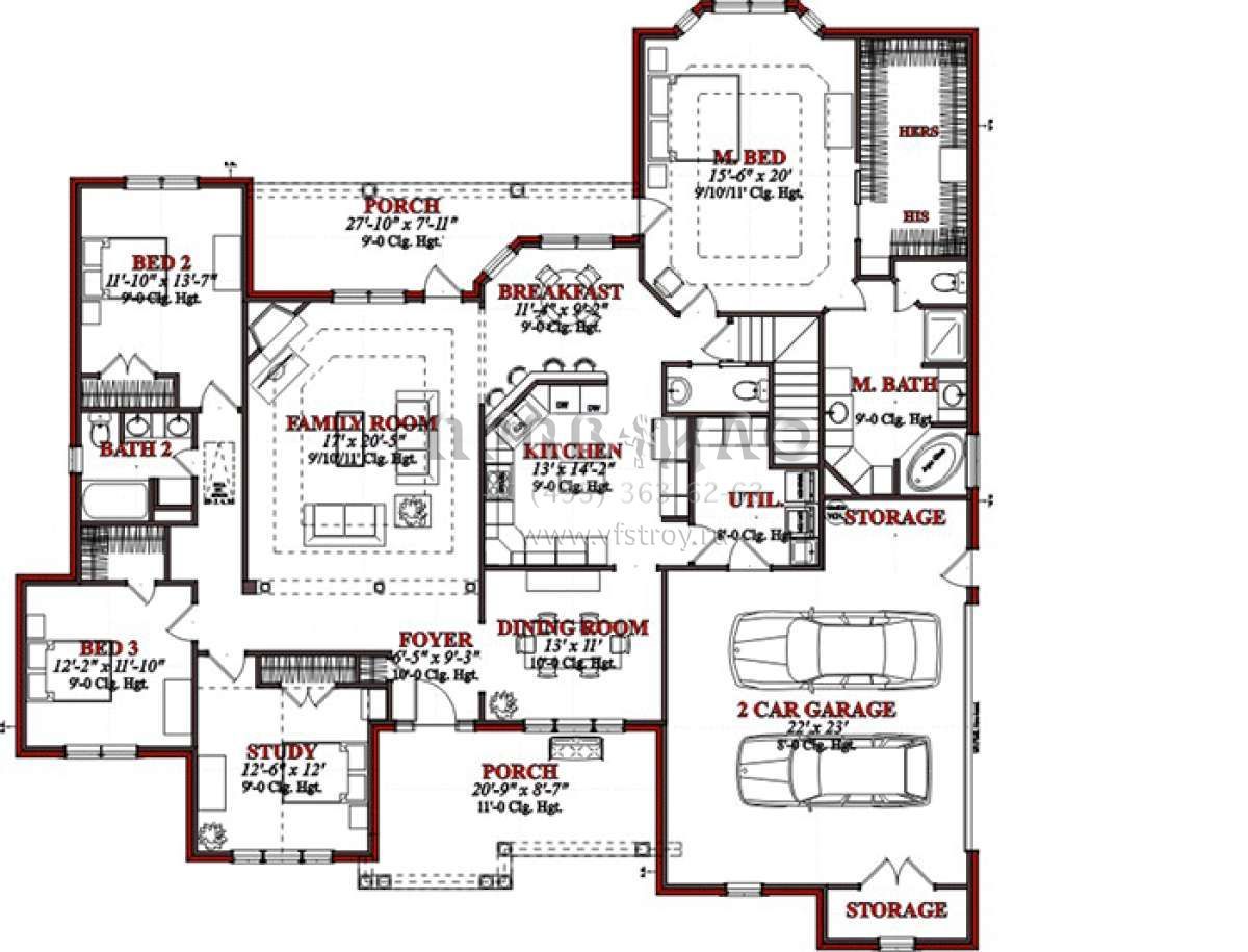 Проект одноэтажного дома с гаражом на две машины в стиле Ранчо S5-248 (1070-00013)
