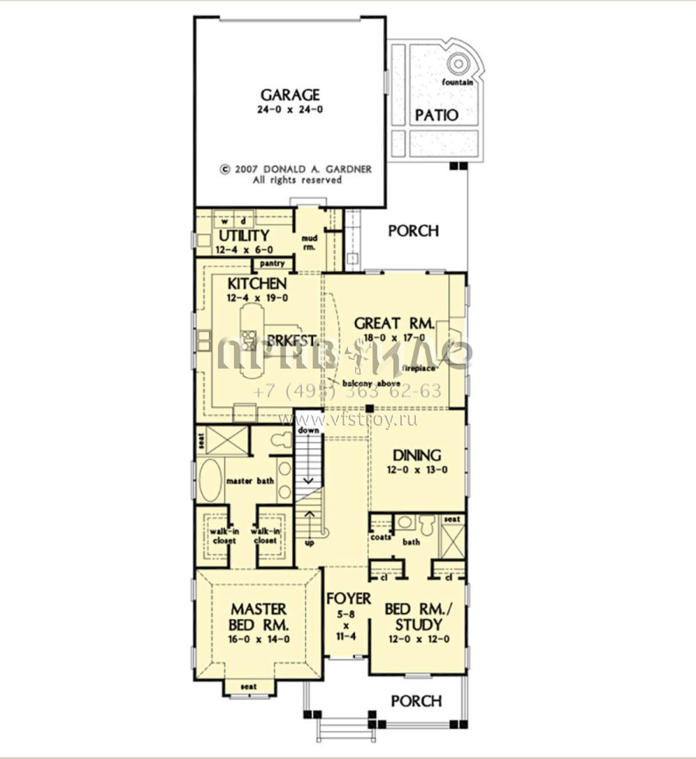 Поскольку этот проект разрабатывался иностранными архитекторами, для строительства дома требуется переработка проекта под действующие в России нормы. Данные визуализации проекта представлены для ознакомления с концепцией проекта. Проект разработан американским архитектурным бюро и представлен America's Best House Plans.