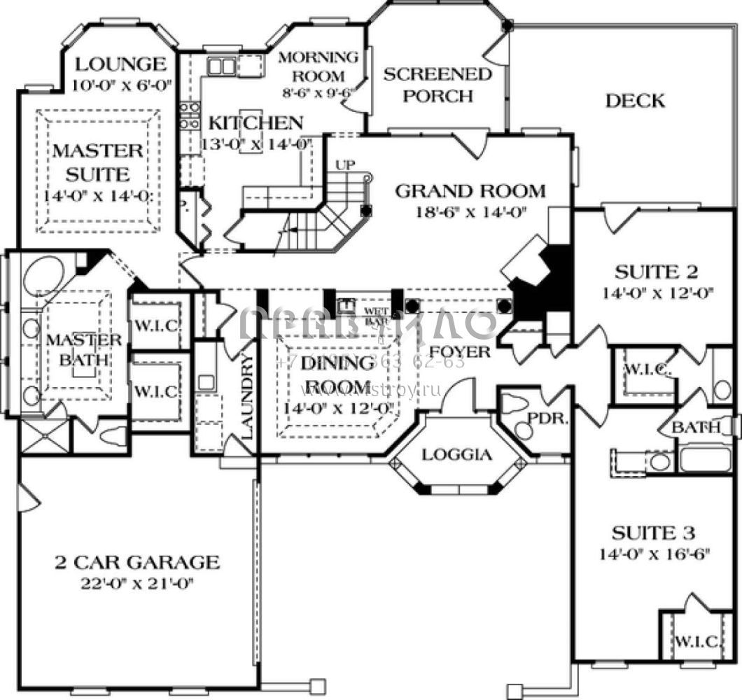 Проект двухэтажного дома с гаражом на две машины в стиле Ранчо S5-248 (3323-00158)