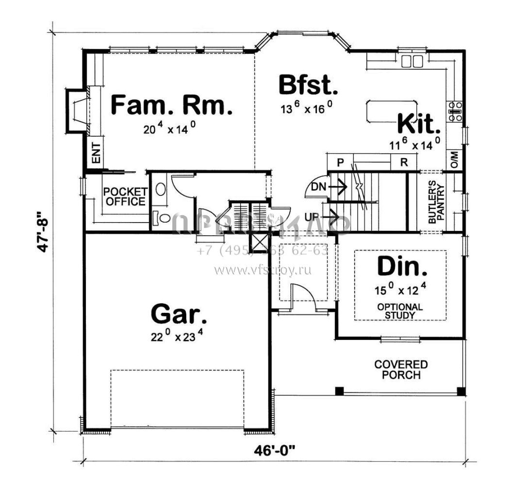 Проект двухэтажного дома с гаражом на две машины в стиле Ранчо S5-248 (402-01395)