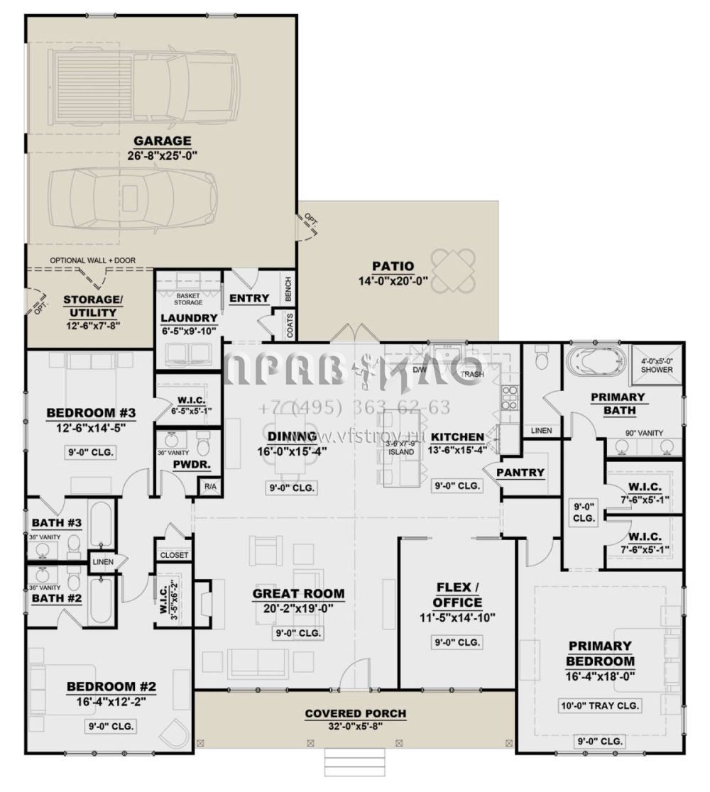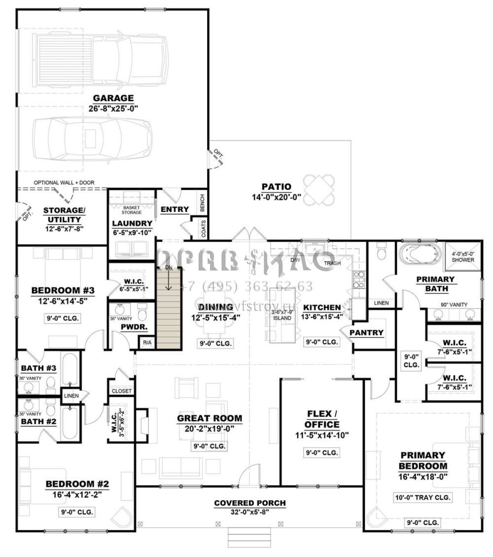 Проект одноэтажного дома с гаражом на две машины в современном стиле S5-248 (7568-00009)