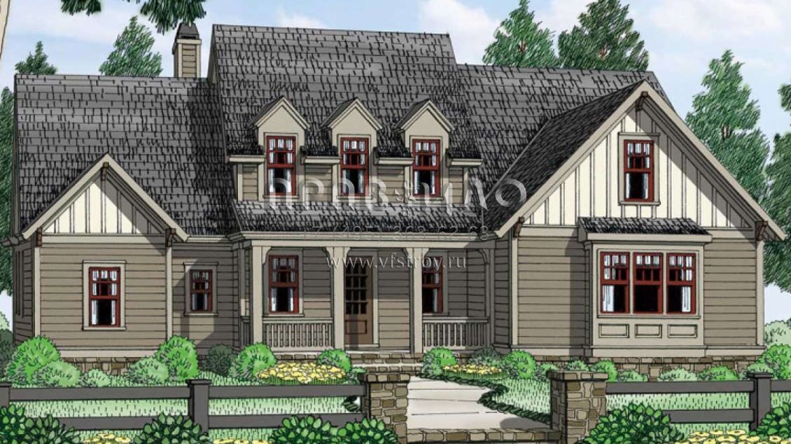 Проект двухэтажного дома с гаражом на две машины в стиле Ранчо S5-248 (8594-00018)