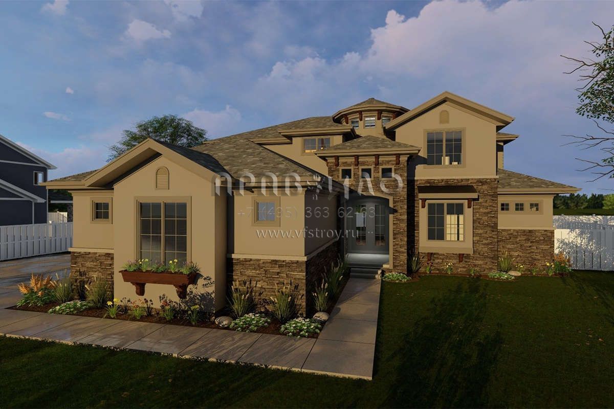 Проект двухэтажного дома с гаражом на три и более машин в английском стиле S5-248 (963-00232)
