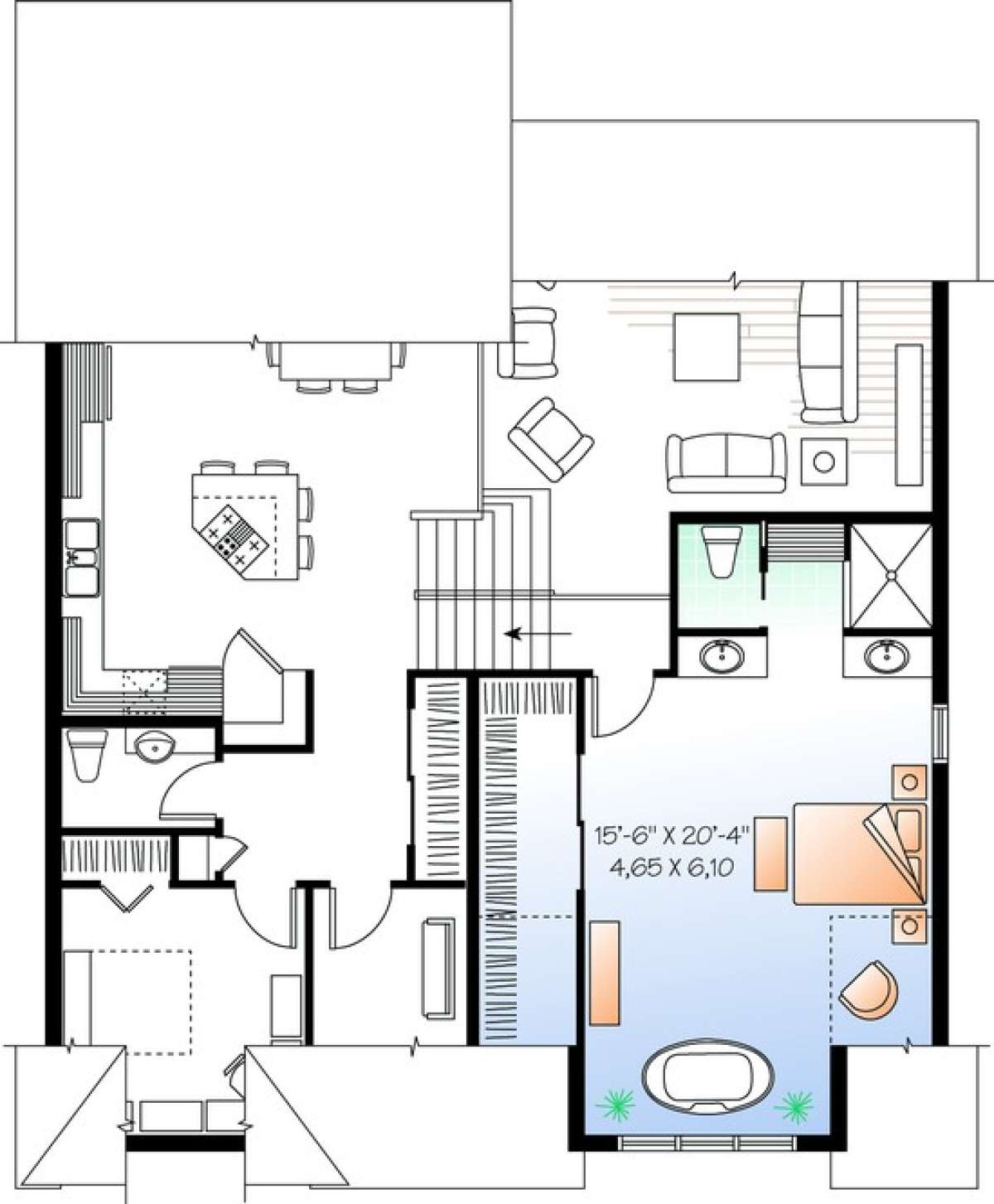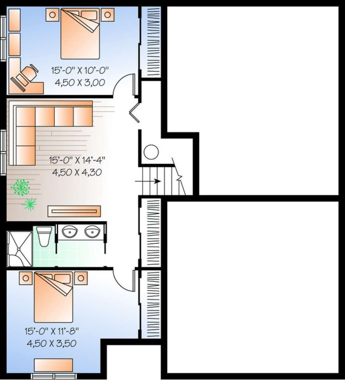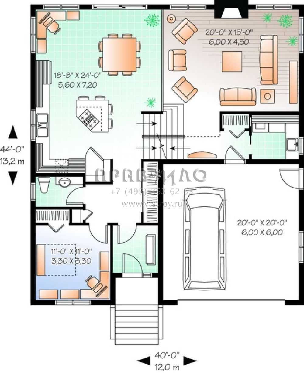 S5-249 (034-00766) Это иностранный проект, для которого требуется адаптация под нормы, действующие в Российской Федерации. Вы видите проект дома в английском стиле. В этом доме сочетаются черты сельской постройки и аскетичность лофта. Внутри жильцы смогут проводить время с максимальным комфортом. Обратим внимание, что сейчас на планировках все размеры представлены в футах. Для перевода в метры вам необходимо значение в футах умножить на 0,3048.