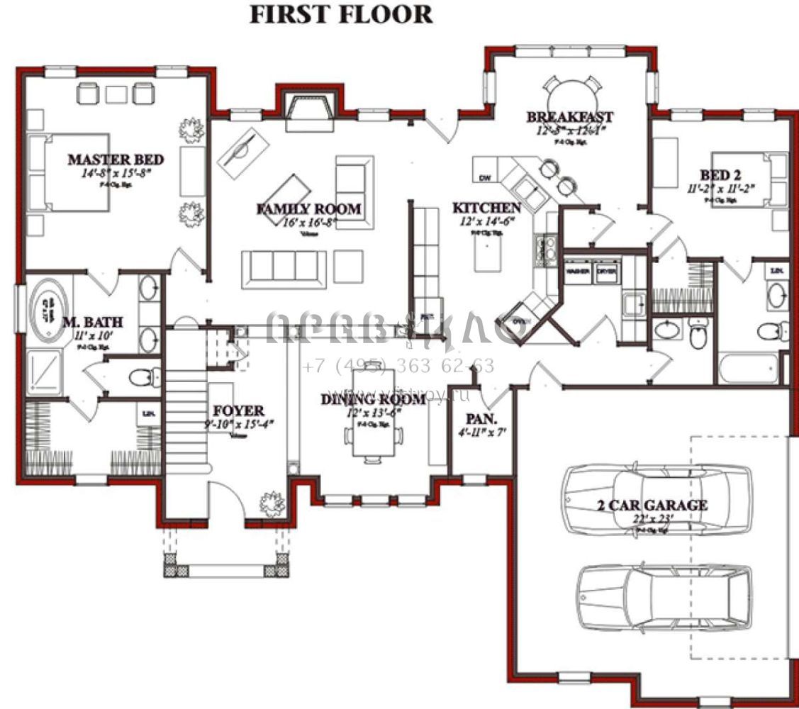 Проект двухэтажного дома с гаражом на две машины в стиле Ранчо S5-249 (1070-00043)